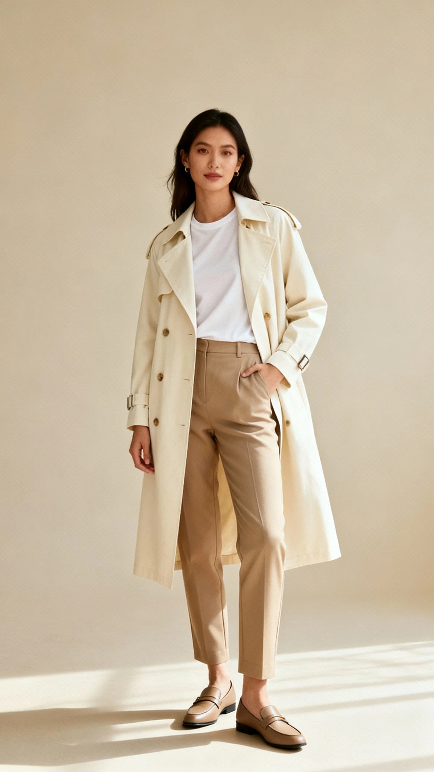 1. Creamy Trench And Tailored Trousers That Whisper “I Woke Up Like This”