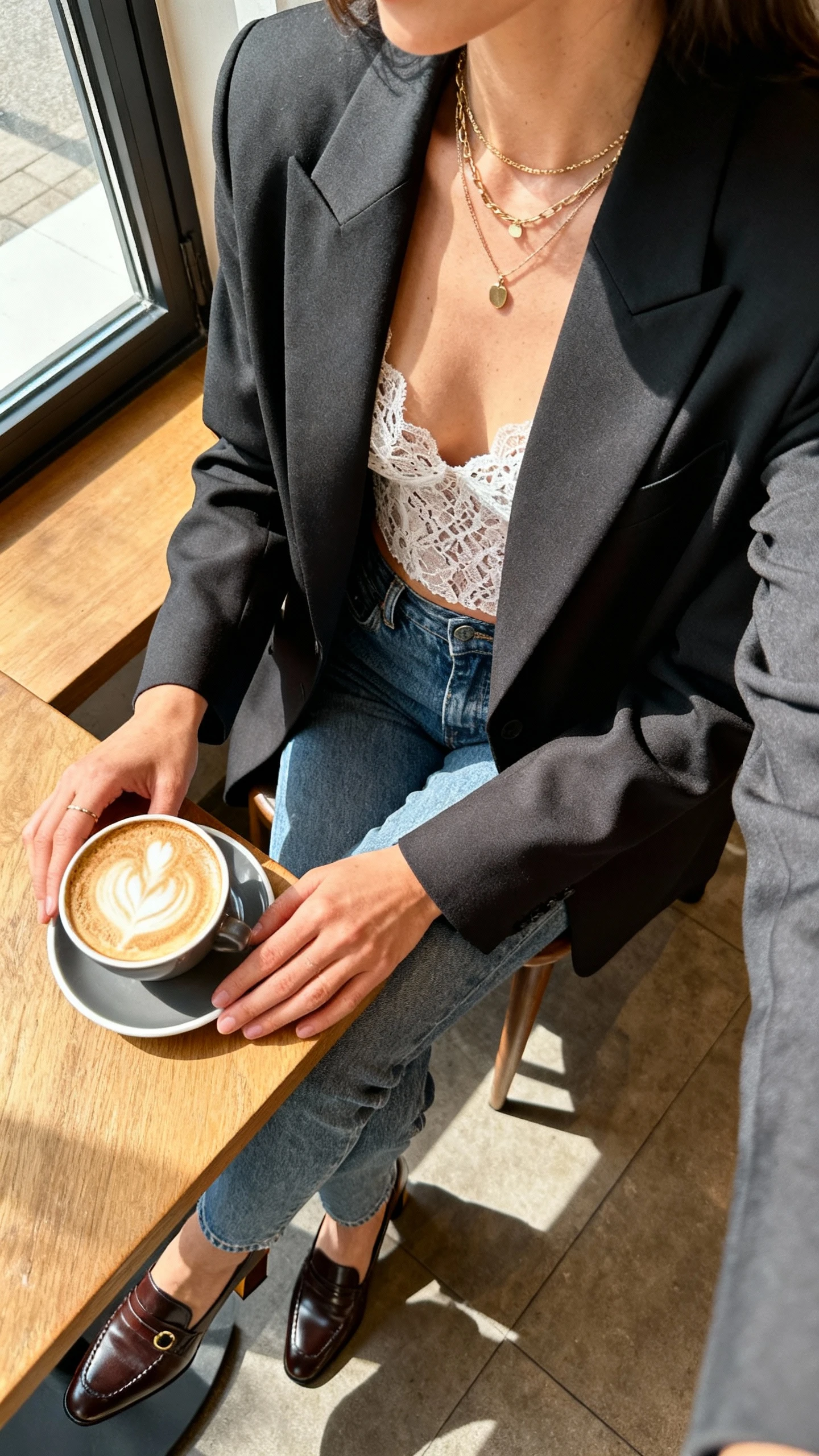 When you want a look that’s chill but still date-night official, this is it. The lace adds romance, the blazer adds structure, and the jeans keep it grounded. It’s easy, sexy, and ready for that rooftop bar.