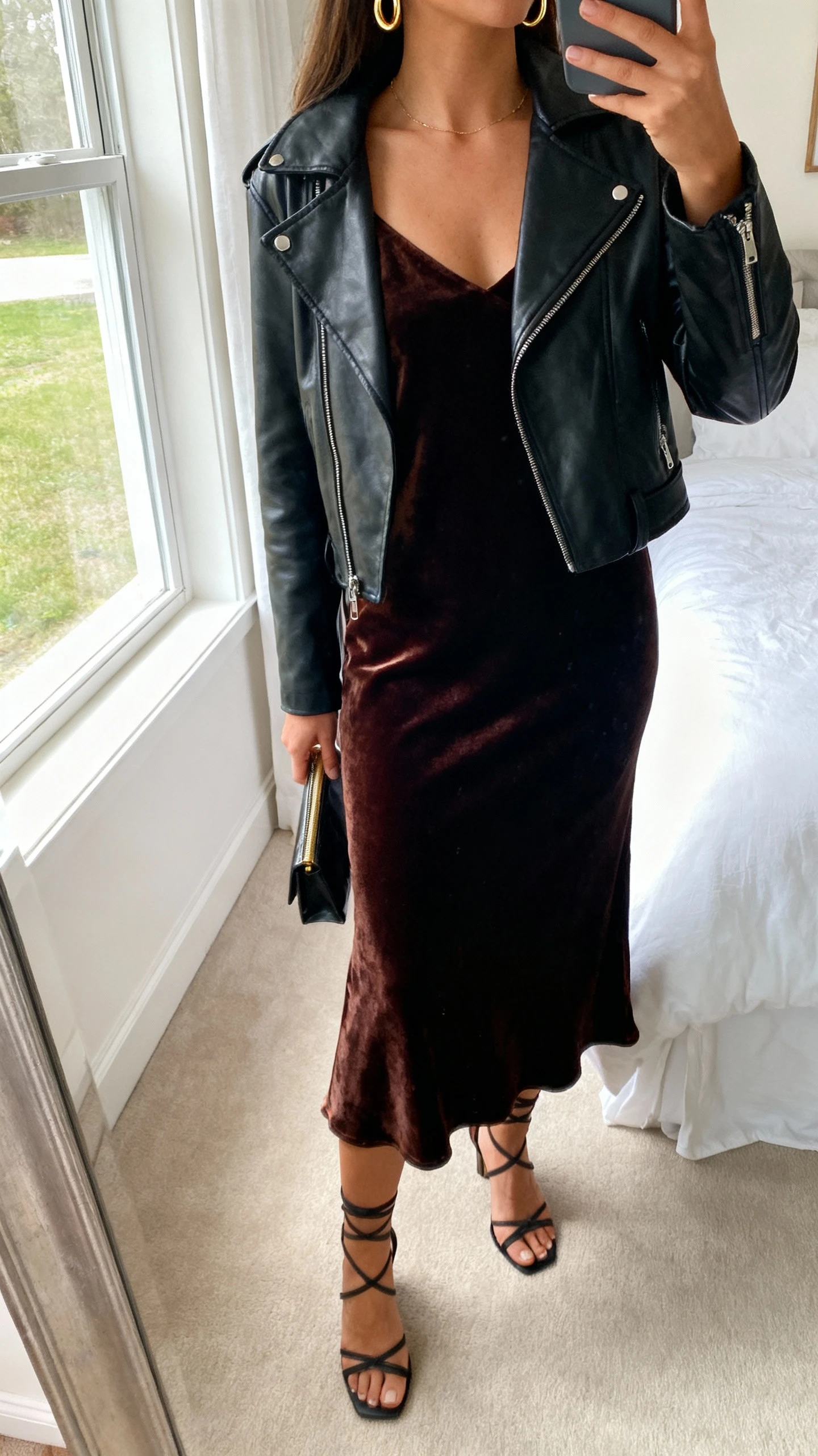 1. Velvet Slip Dress & Leather Jacket Energy