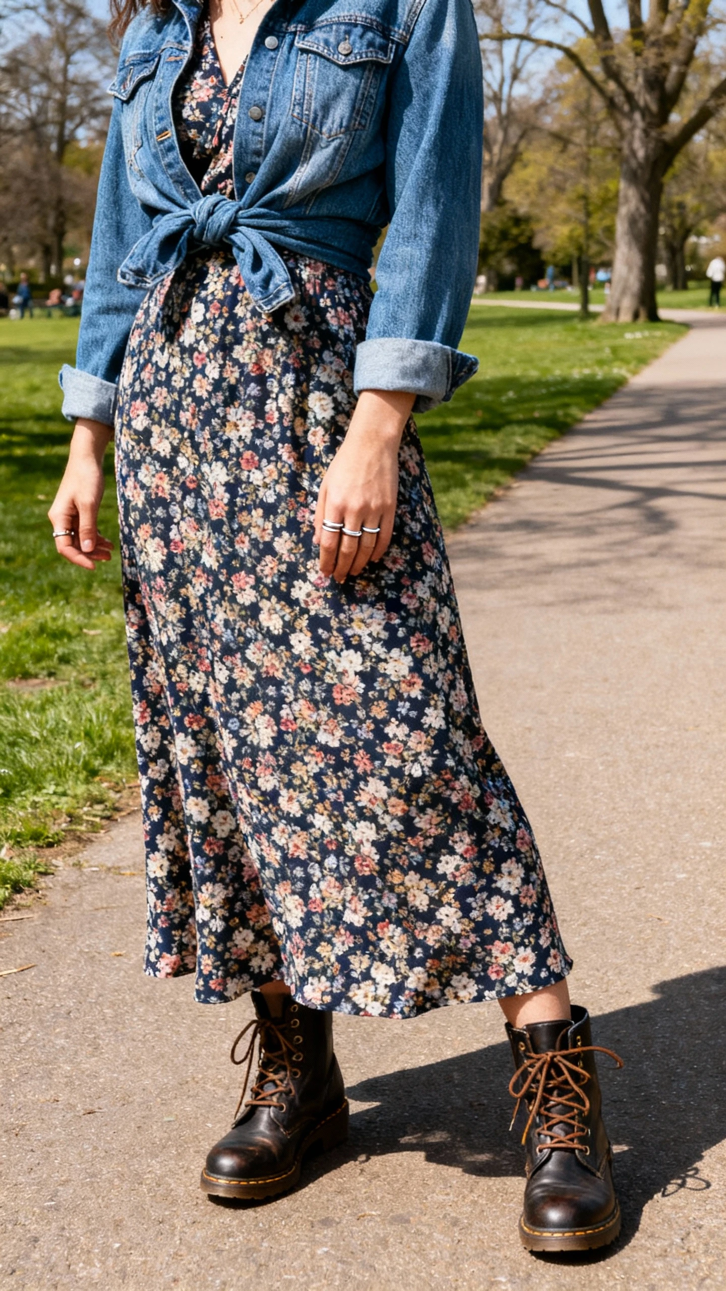 10. Floral Maxi Dress & Tough Boots Match-Up