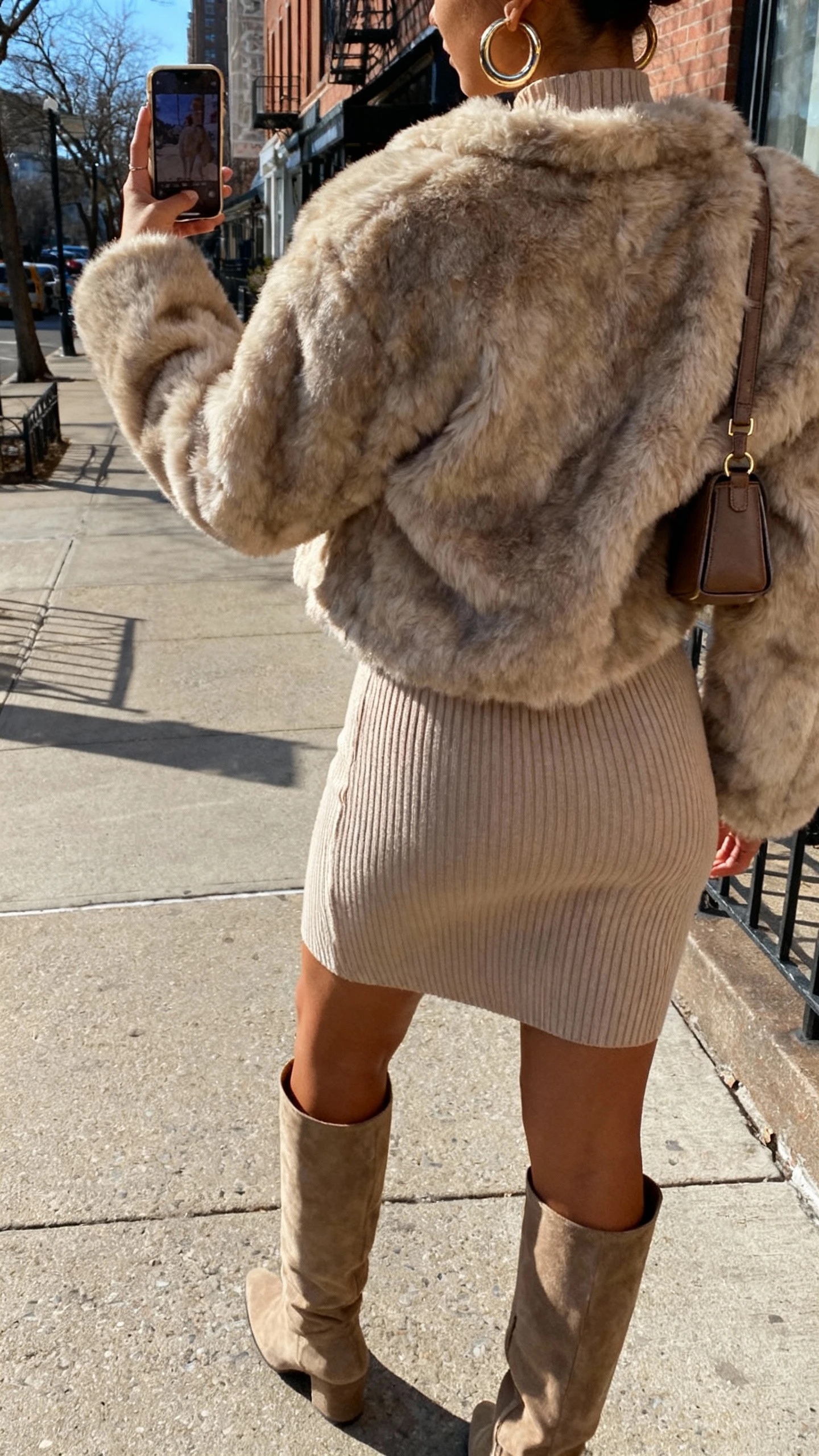 8. Street-Chic: Faux Fur Coat With Bodycon Knit
