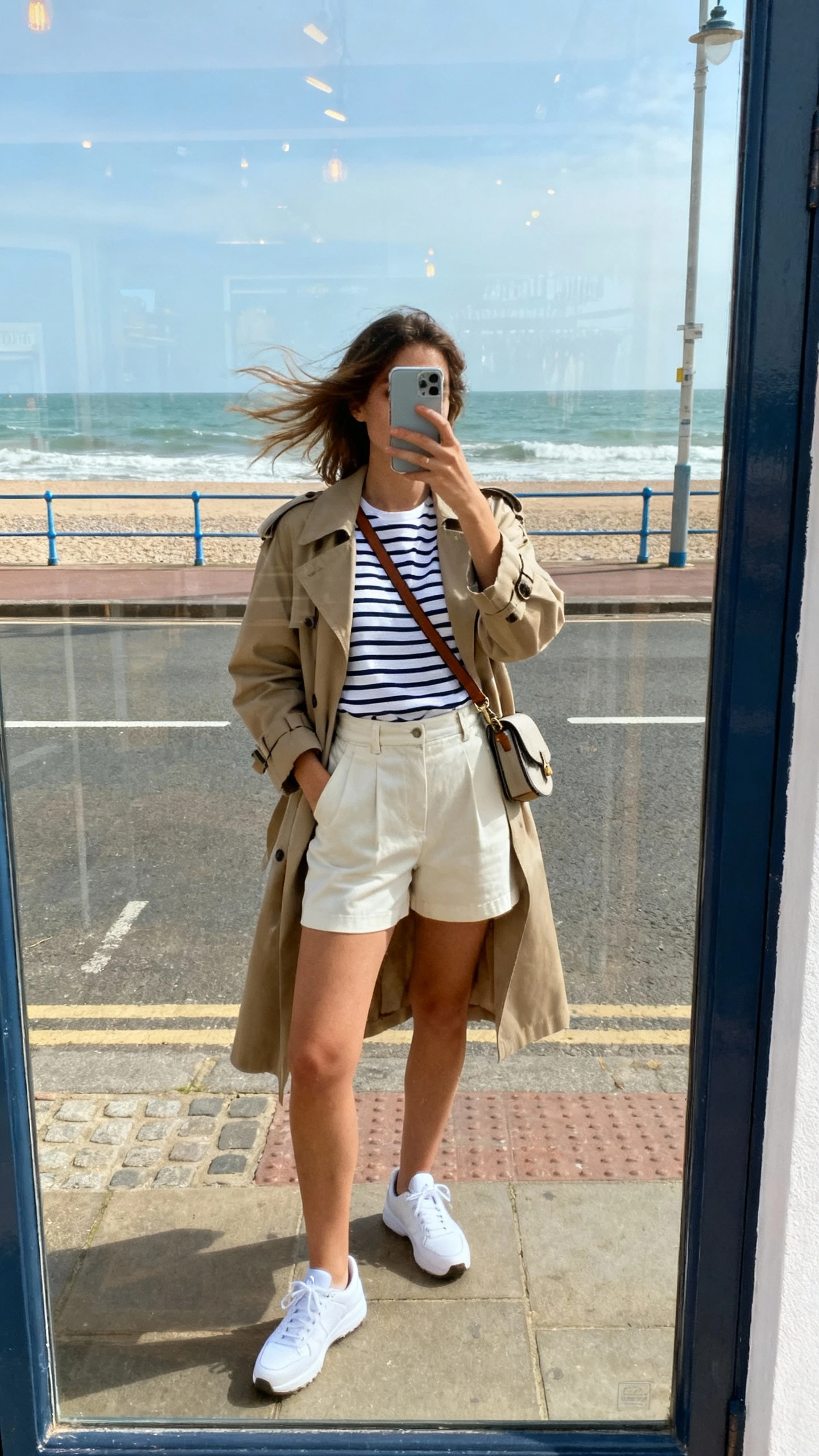 6. High-Waist Shorts + Breton Stripe + Trench For French-Girl By The Sea