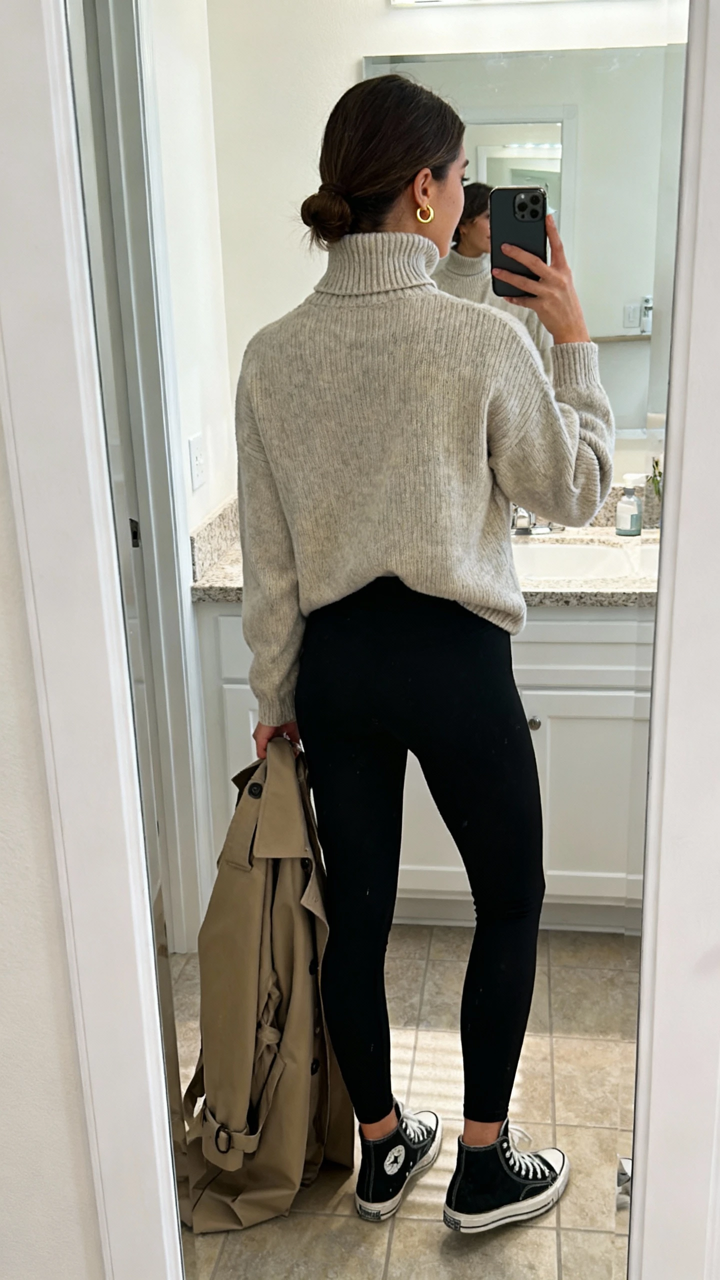 - Mock-neck knit or oversized sweatshirt