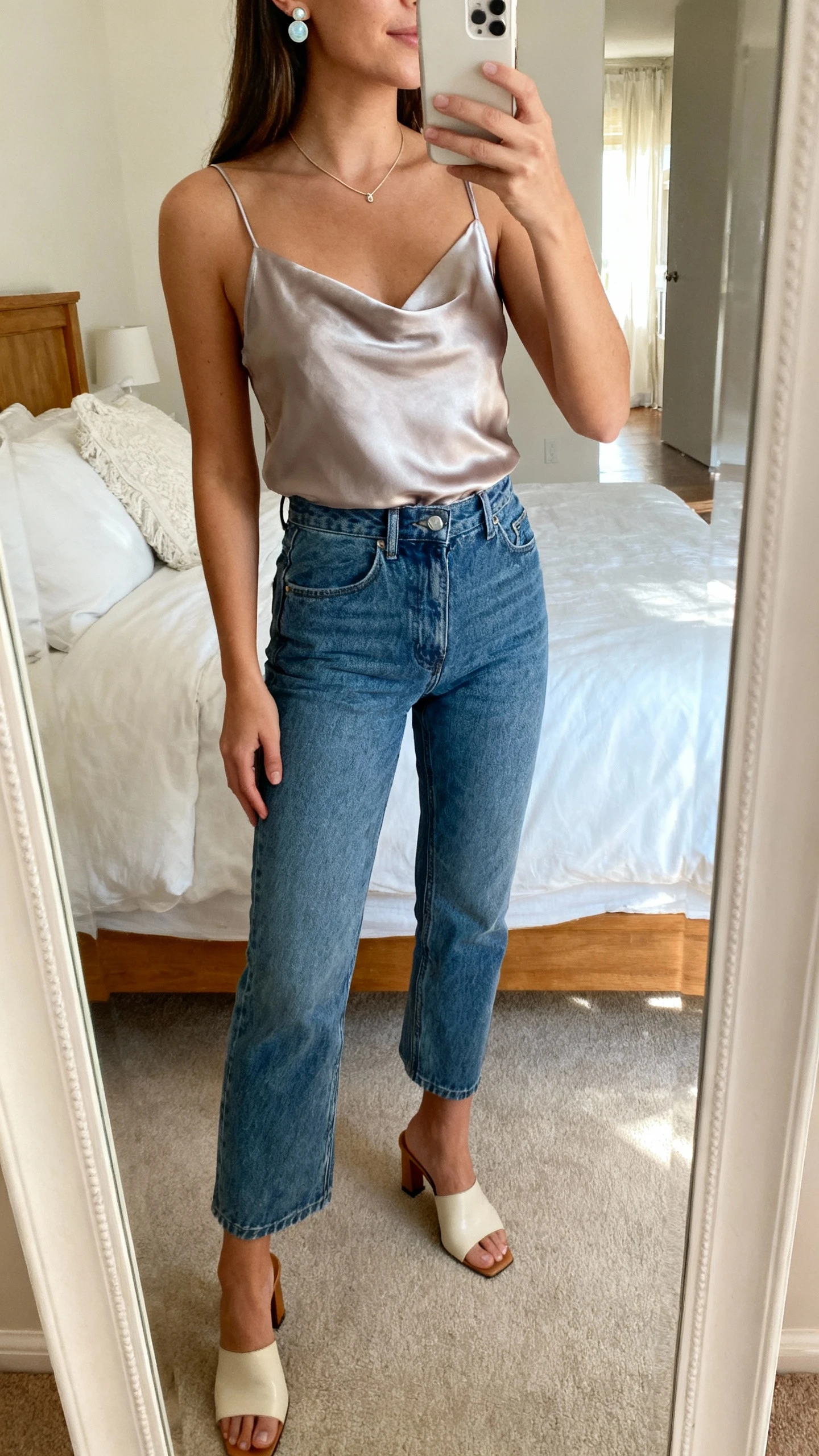 - Silk camisole or fine-knit sweater