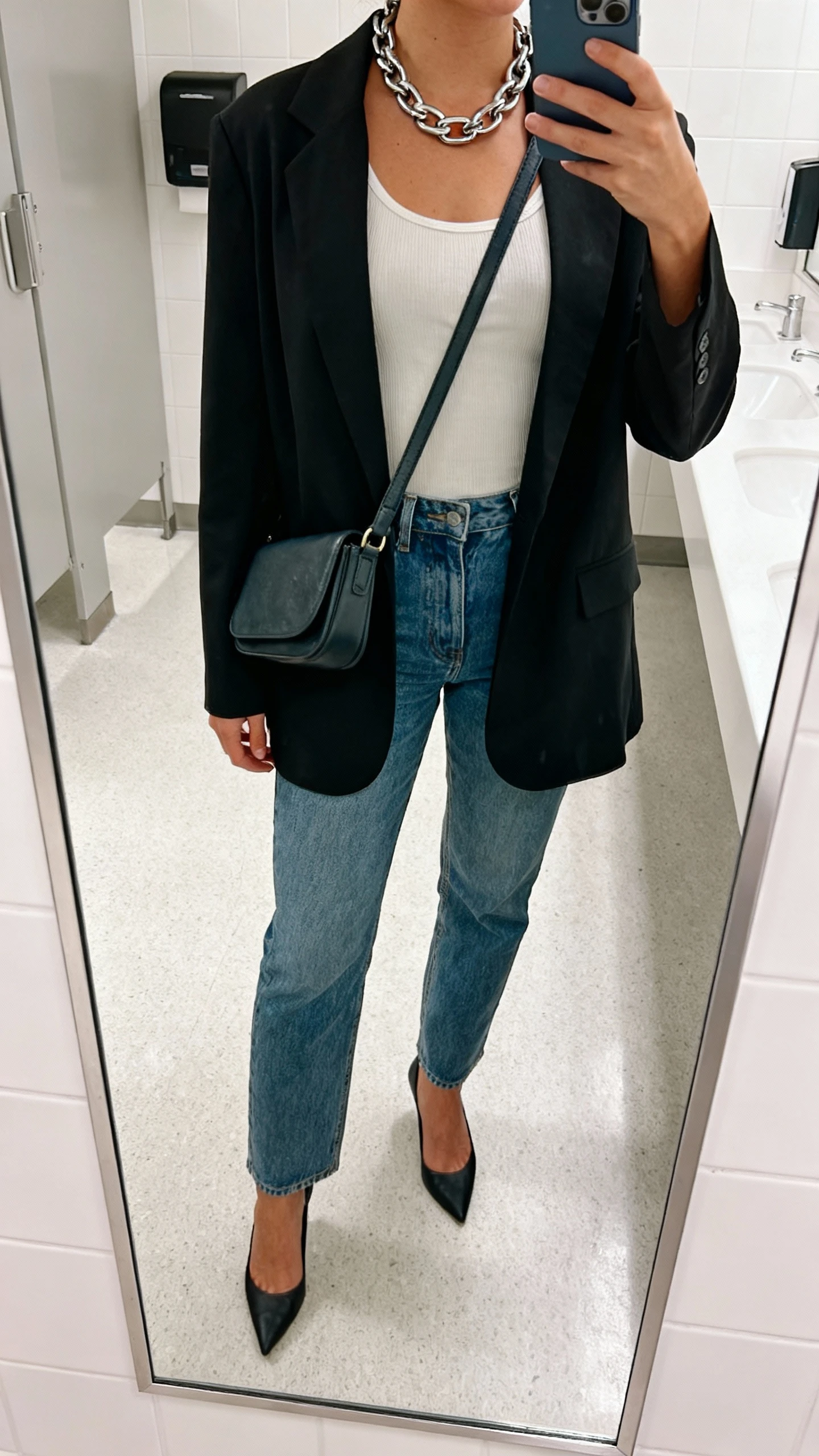- Relaxed blazer with a tank or bodysuit