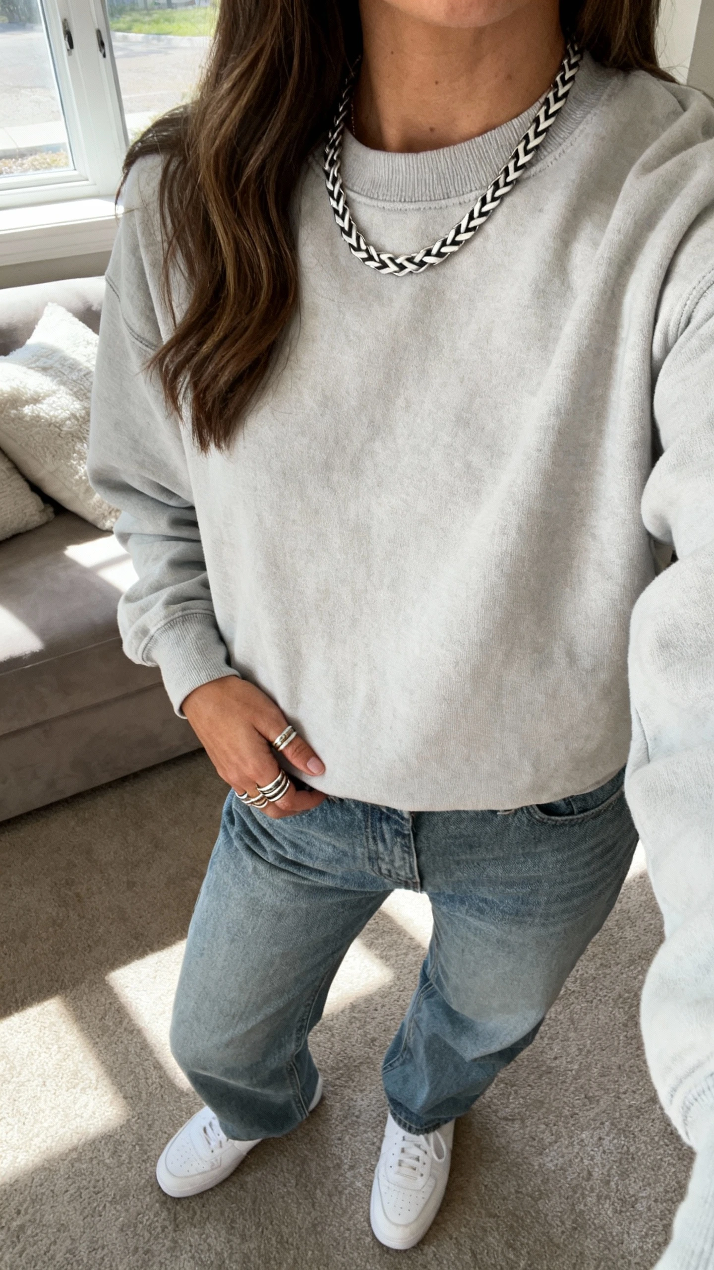 Perfect for coffee runs, office days, or casual date nights. Switch jeans for a slip skirt and you’re done. If you already have gold, try polished silver for a cooler, modern vibe.