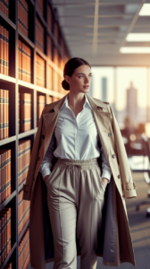 Yes, you can wear sweatpants to the office (kind of). Tuck a crisp white shirt into high-waisted joggers, then layer a classic trench coat on top. It’s giving “business casual—but make it cozy.”