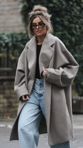 Basic tank + baggy jeans + tailored coat + statement 2000s sunnies = effortless cool.