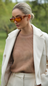 Try them with a monochrome outfit — cream pants, beige knit top, and sleek hair bun. Add gold accessories for that quiet luxury finish.