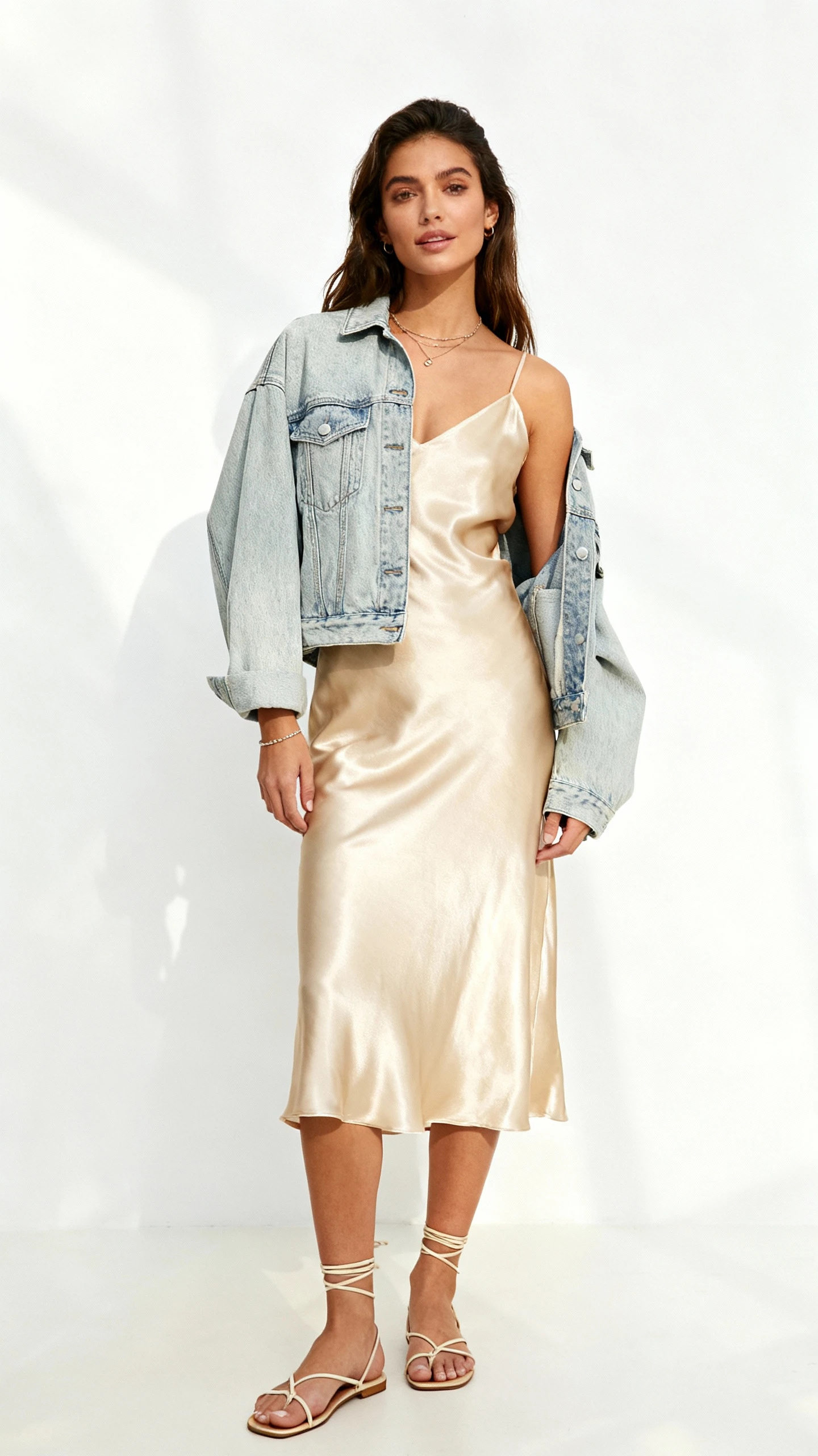 2. Satin Slip + Boxy Denim Jacket That Feels Effortless