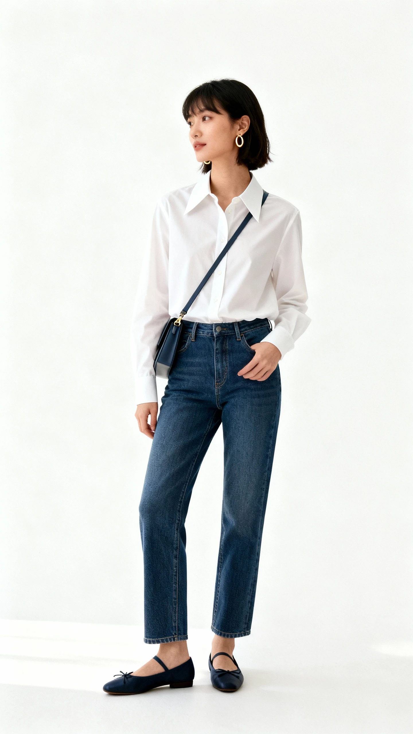 2. Off-Duty Parisian: Lapel Shirt + Straight Jeans + Ballet Flats