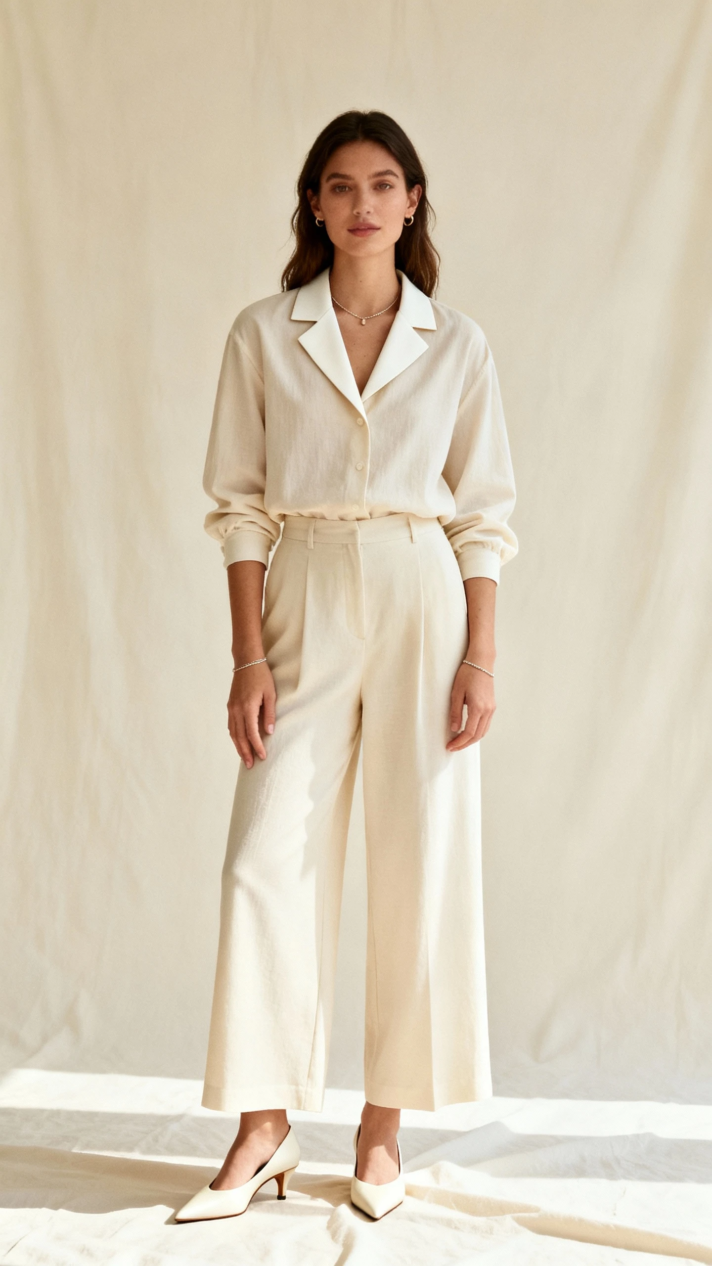 Monochrome is the shortcut to looking expensive. Pair your lapel shirt with pieces in the same color family—think cream on cream, charcoal head-to-toe, or deep chocolate with tonal accessories—and suddenly you’re giving editor-on-the-go energy.