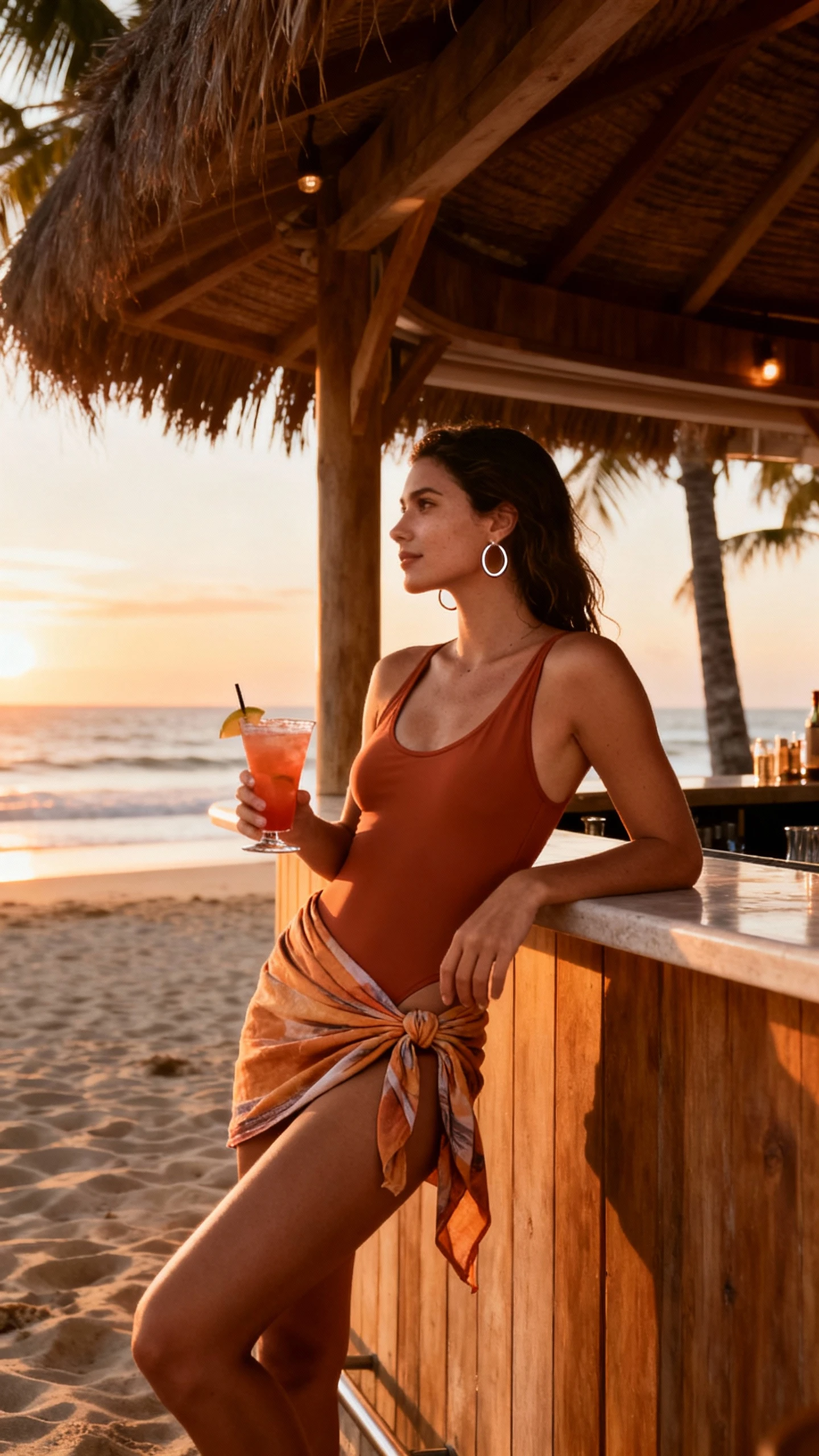 - Chiffon or satin sarong (prints like palm, ombré, or abstract)