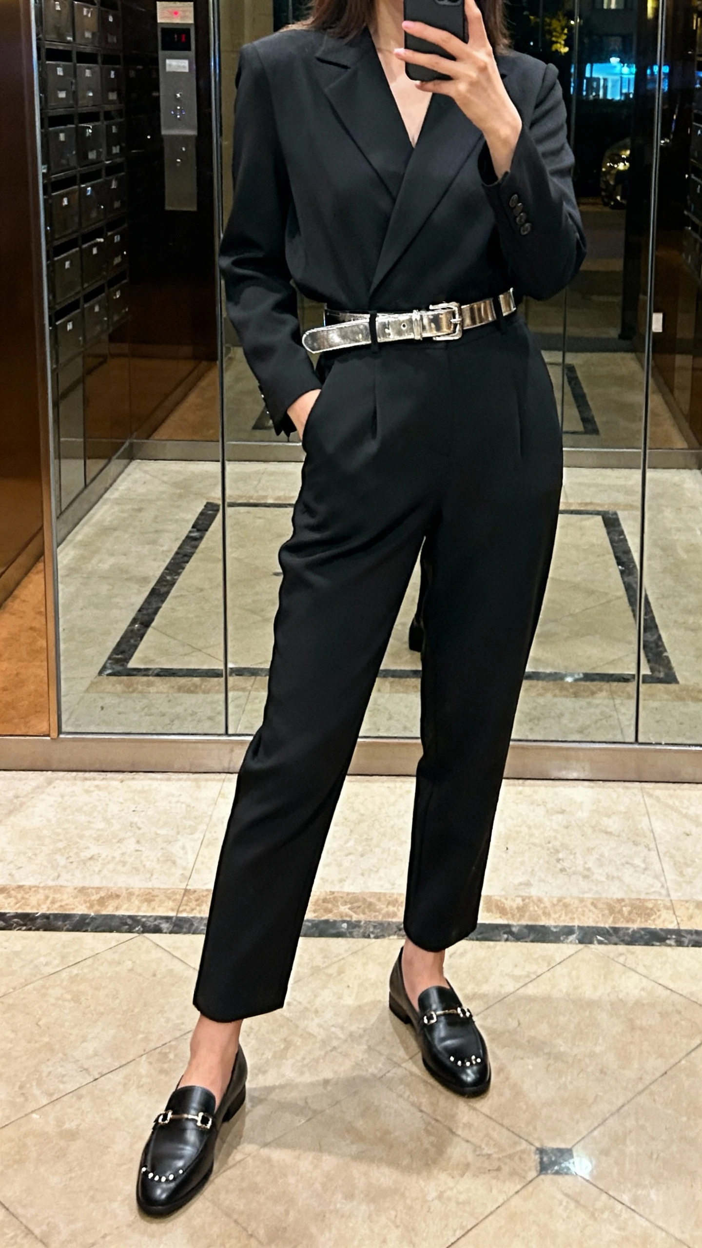5. The Monochrome Set With A Metallic Belt Glow-Up