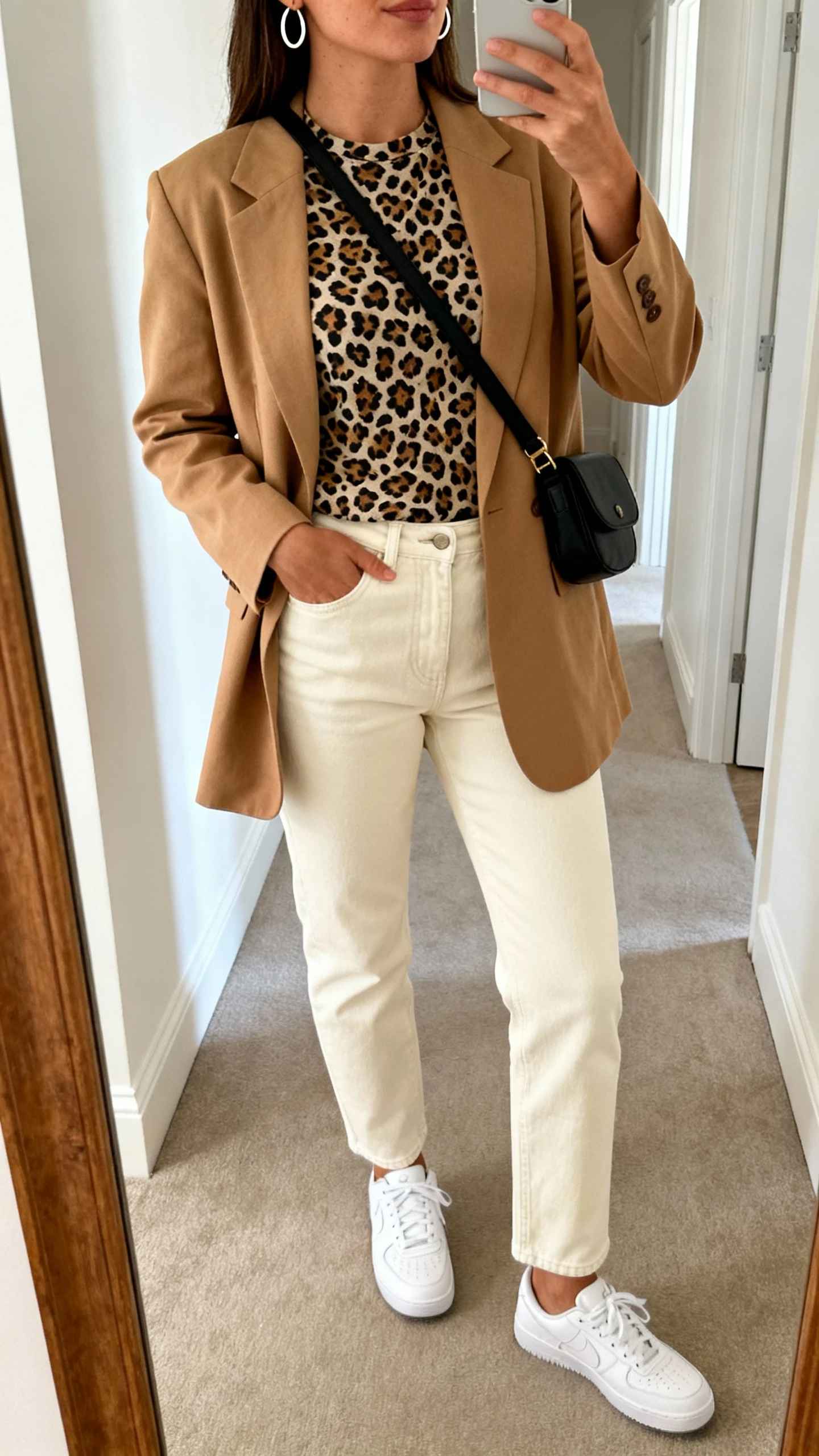 3. Casual-Polish: Cheetah Tee + Cream Jeans + Blazer You’ll Wear Everywhere