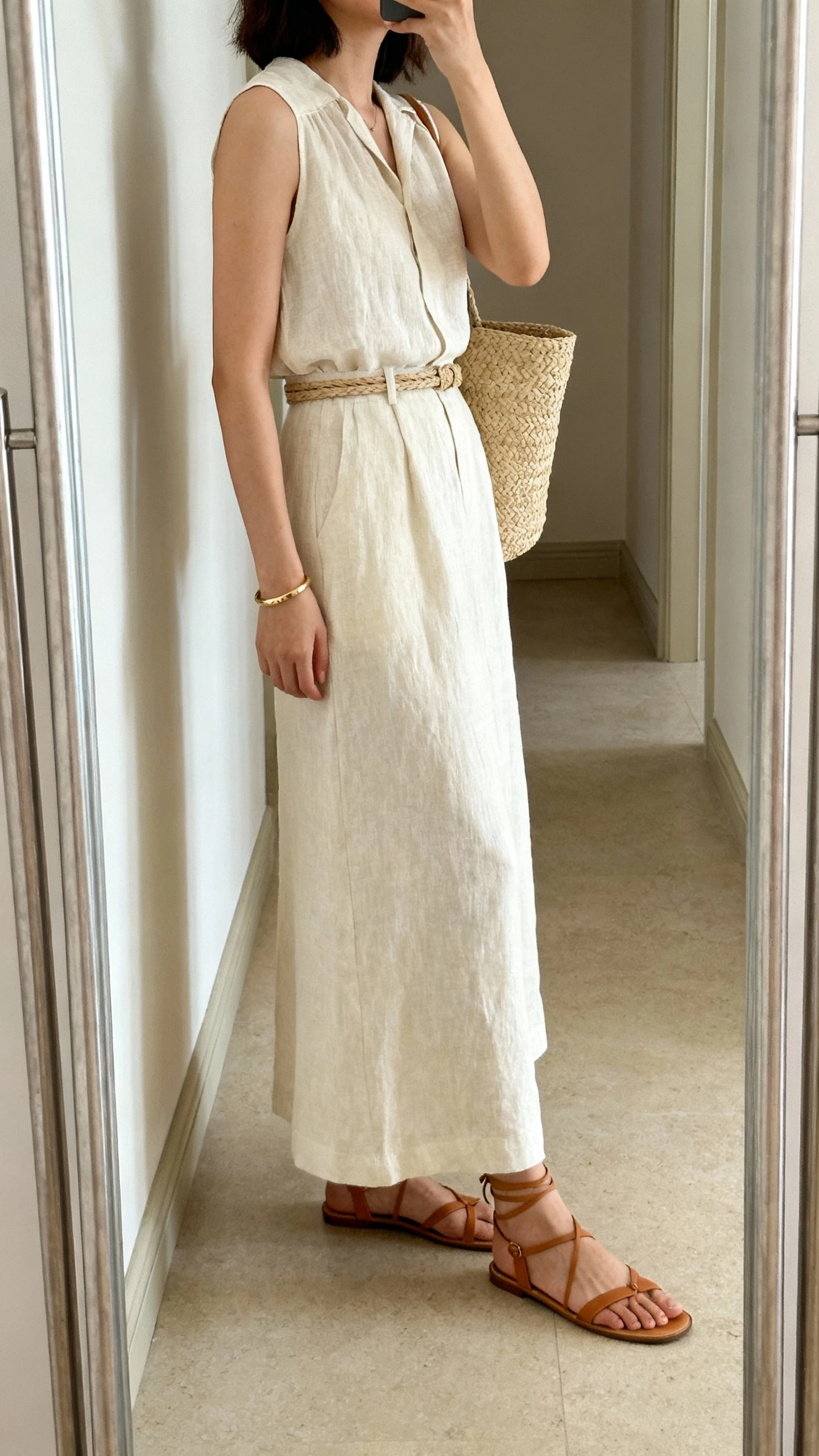 - Textures: linen, cotton twill, canvas, raffia, soft leather