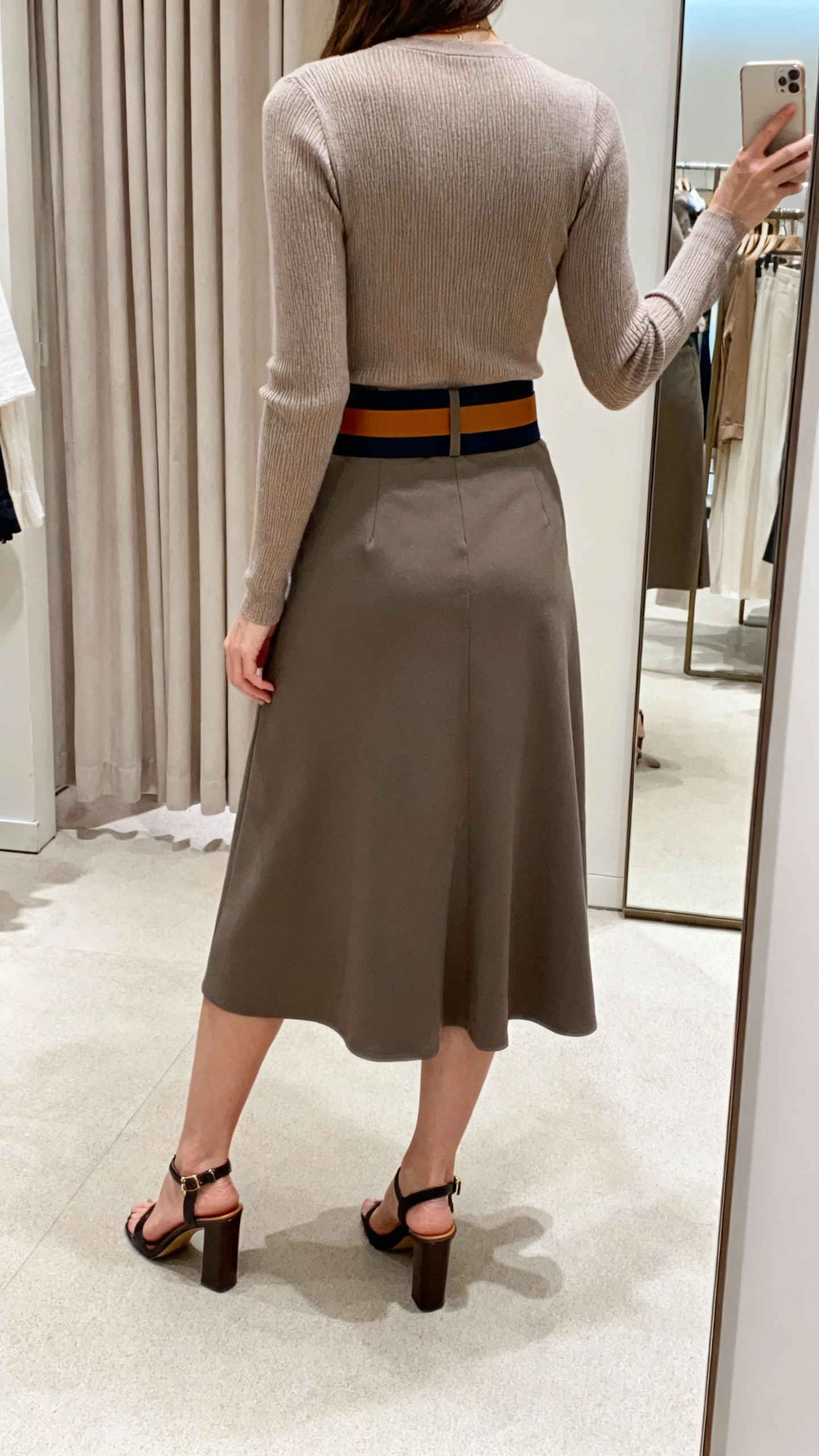 4. The Waist-Disappearing Skirt Problem: Midi Skirt + High-Contrast Belt That Defines