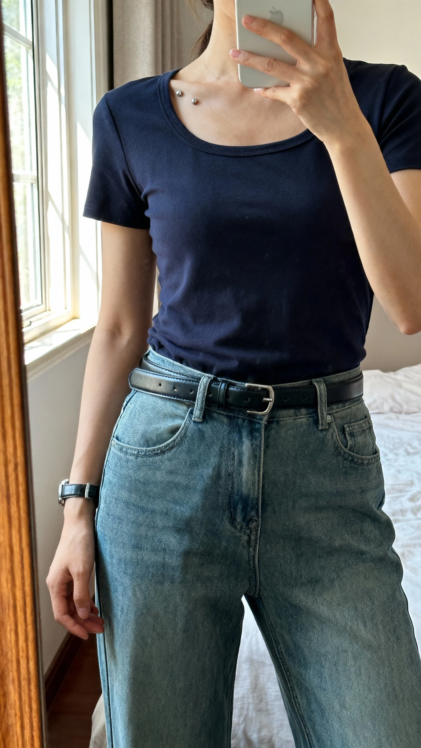 1. The Slouchy Waist Gap Fix: High-Waist Jeans + Sleek Everyday Belt