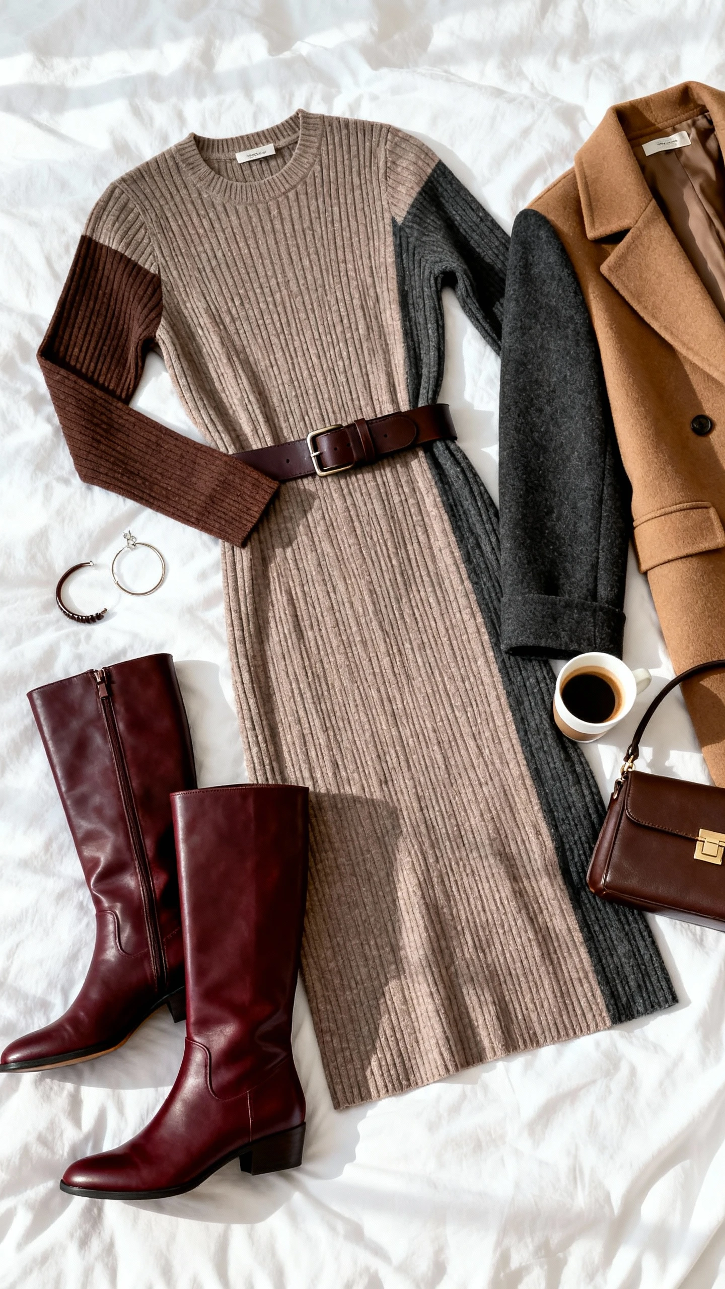 4. Luxe Knit Dress And Knee-High Boots For Desk-To-Dinner