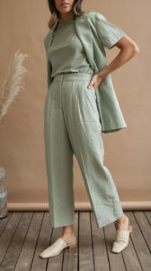 Style tip: Play with texture—a linen set for summer, a wool-blend for winter, or silky fabrics for evening chic.