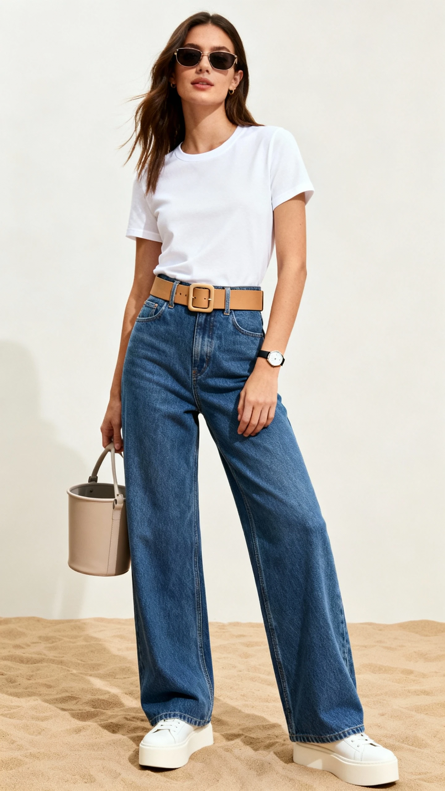 7. The Elevated Casual: White Tee, Wide-Leg Jeans, And A Chunky Waist-Defining Belt