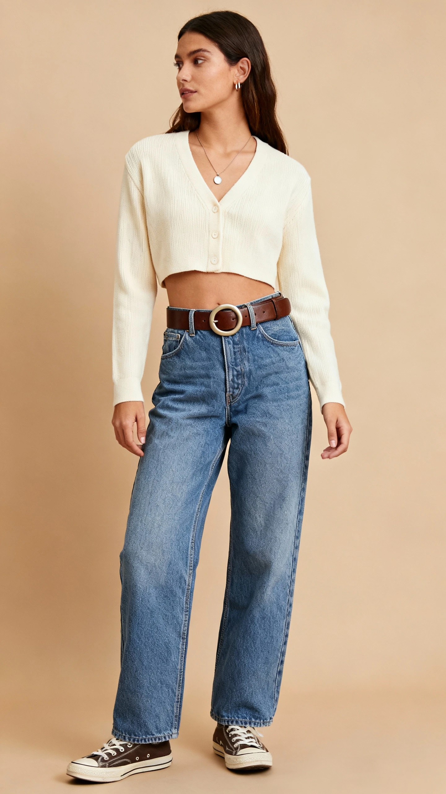Comfort-first doesn’t mean style-last. A cropped cardigan with vintage blue denim and a chunky tan or chocolate belt is the ultimate weekend uniform—cute, cozy, and flattering. It’s giving coffee run, bookstore, and spontaneous lunch all in one go.
