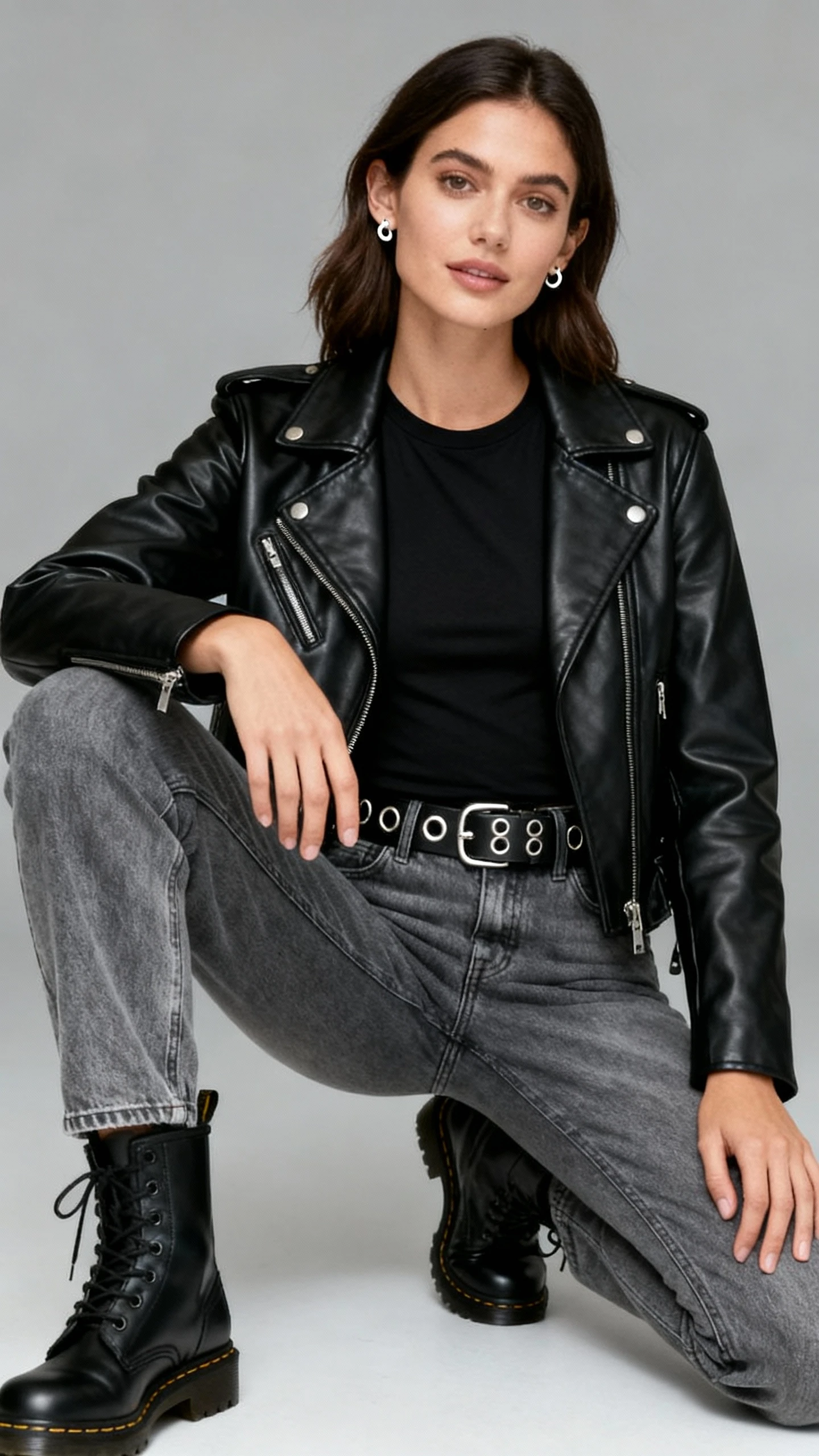 Wear it to a show, a bar, or anytime you want easy attitude. If you want a softer spin, swap the moto for an oversized cardigan and keep the belt—instant cozy-grunge.