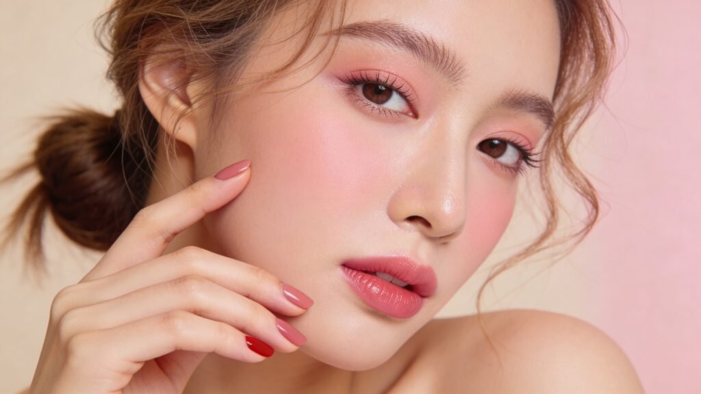 Nails: nude, blush, or classic red (short & neat)