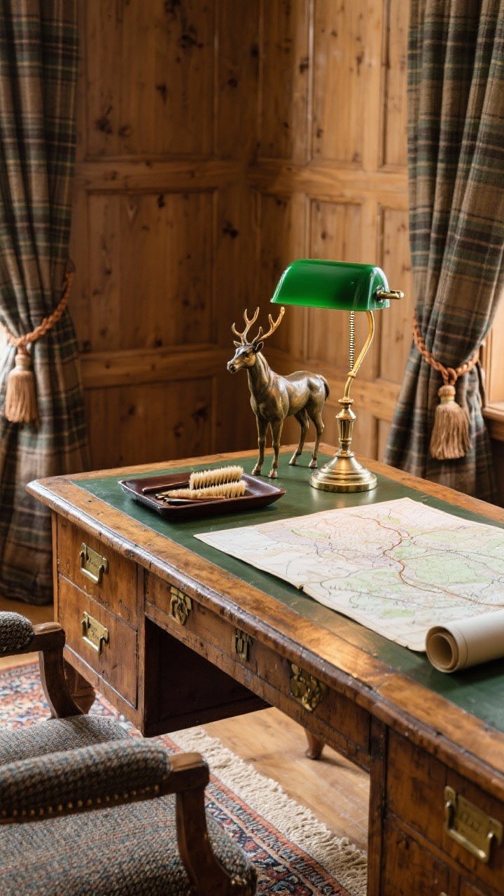 3. The Equestrian Study: Tweed, Plaid, and Weathered Oak