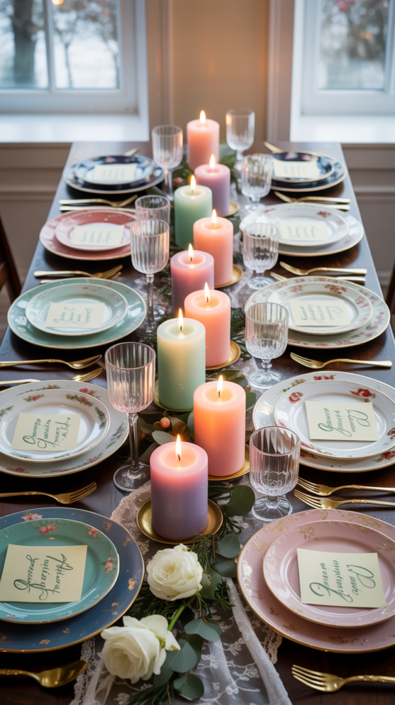 - Use lace runners and pastel candles.