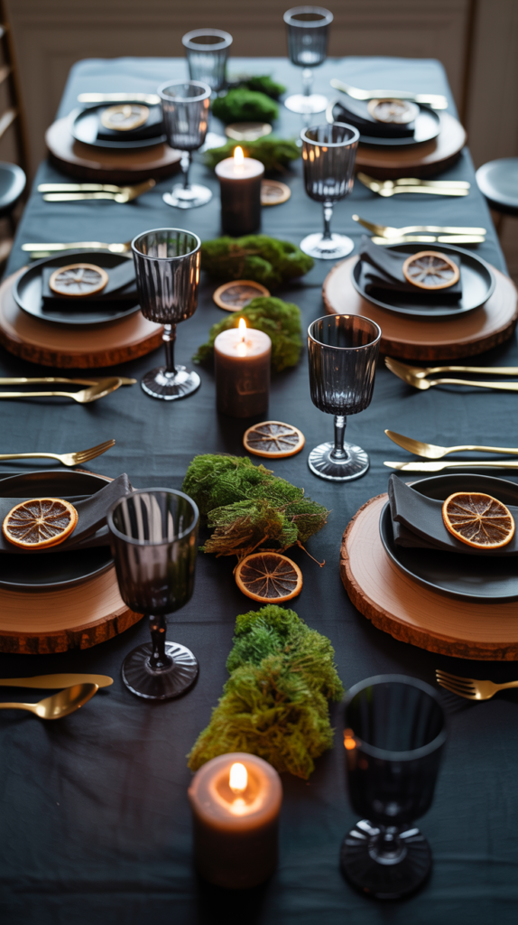- Use a charcoal or deep green tablecloth.