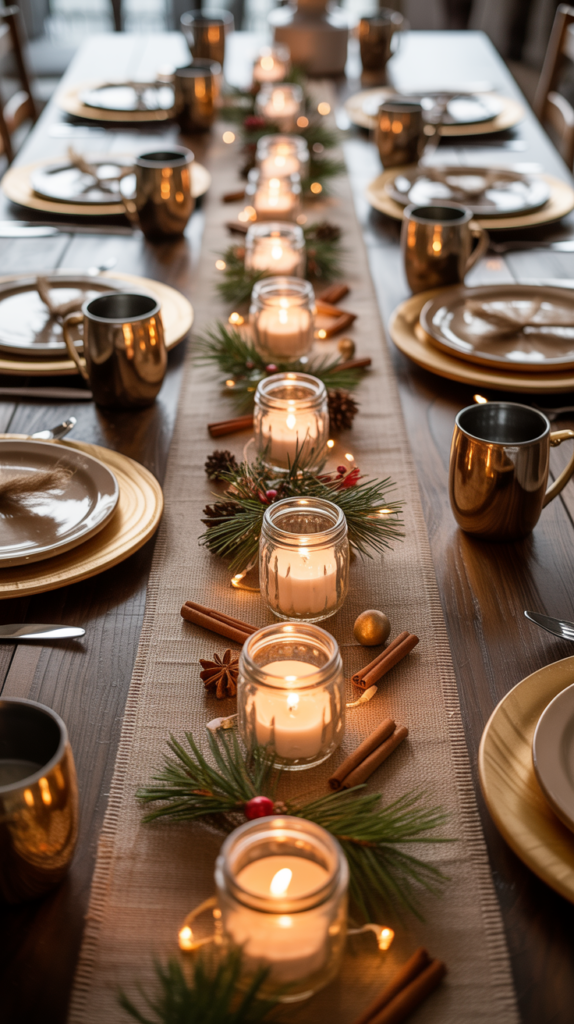 - Layer with texture: Use a plaid or velvet table runner for richness.