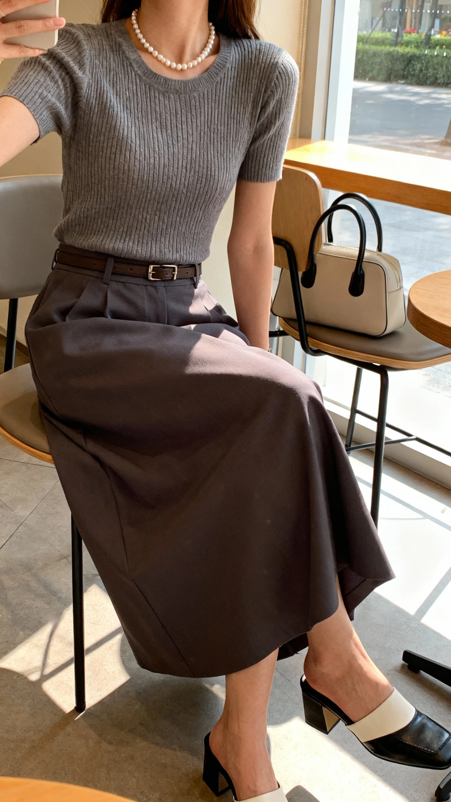 This is perfect for city days, theater nights, or smart brunches. When temps drop, layer a cashmere scarf and leather gloves. Not a skirt person? Swap for tailored shorts and opaque tights—same effect, fresh twist.