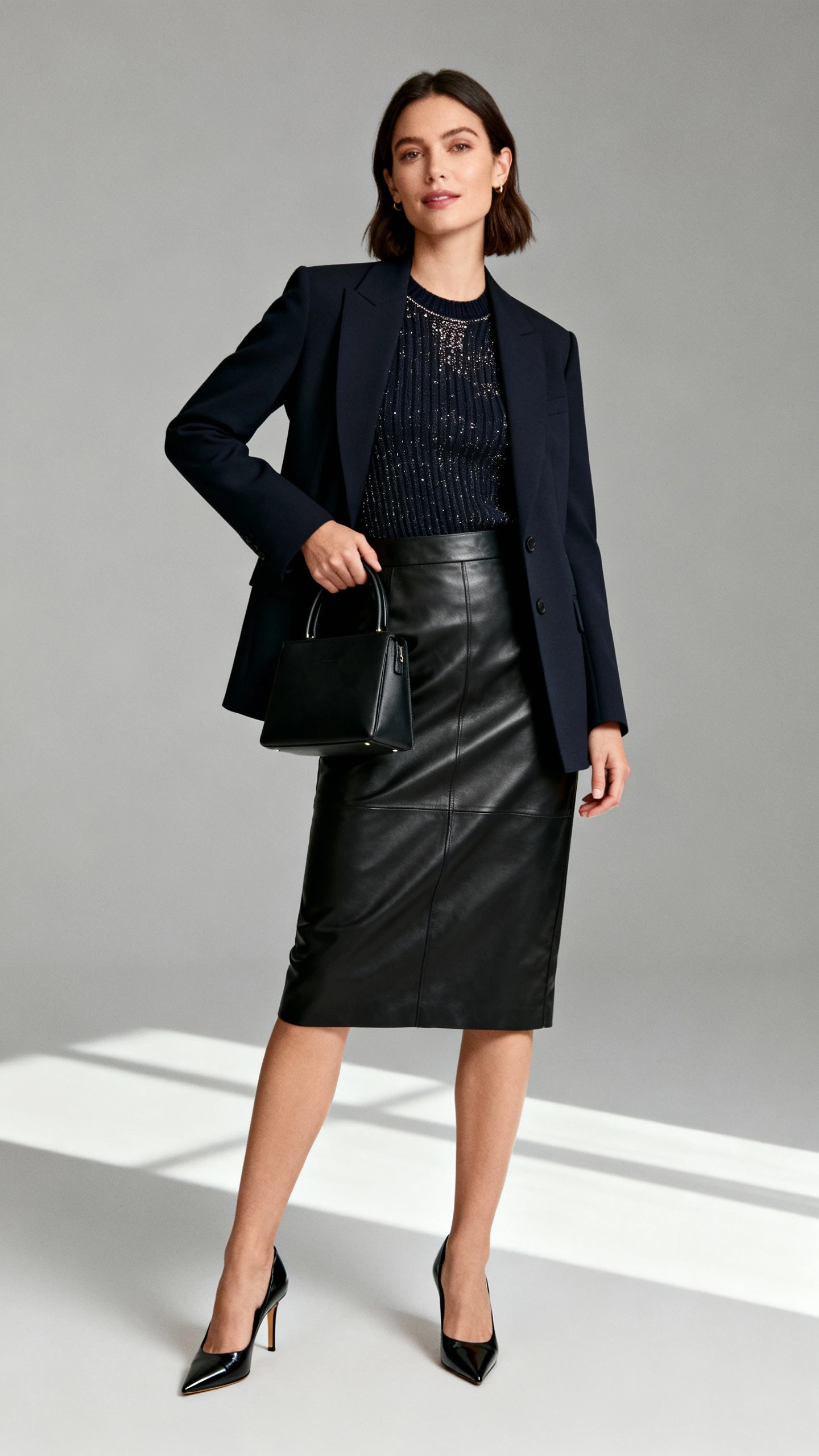 - Stick to polished textures: smooth leather, pressed wool, crisp silk. The mix feels expensive.