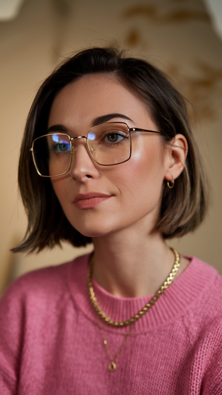 Think thick acetate frames, geometric shapes, and unexpected colors like deep burgundy or ivory white. These glasses practically beg to be worn with a tailored blazer, a messy bun, and lip gloss that costs too much but you’ll never regret.