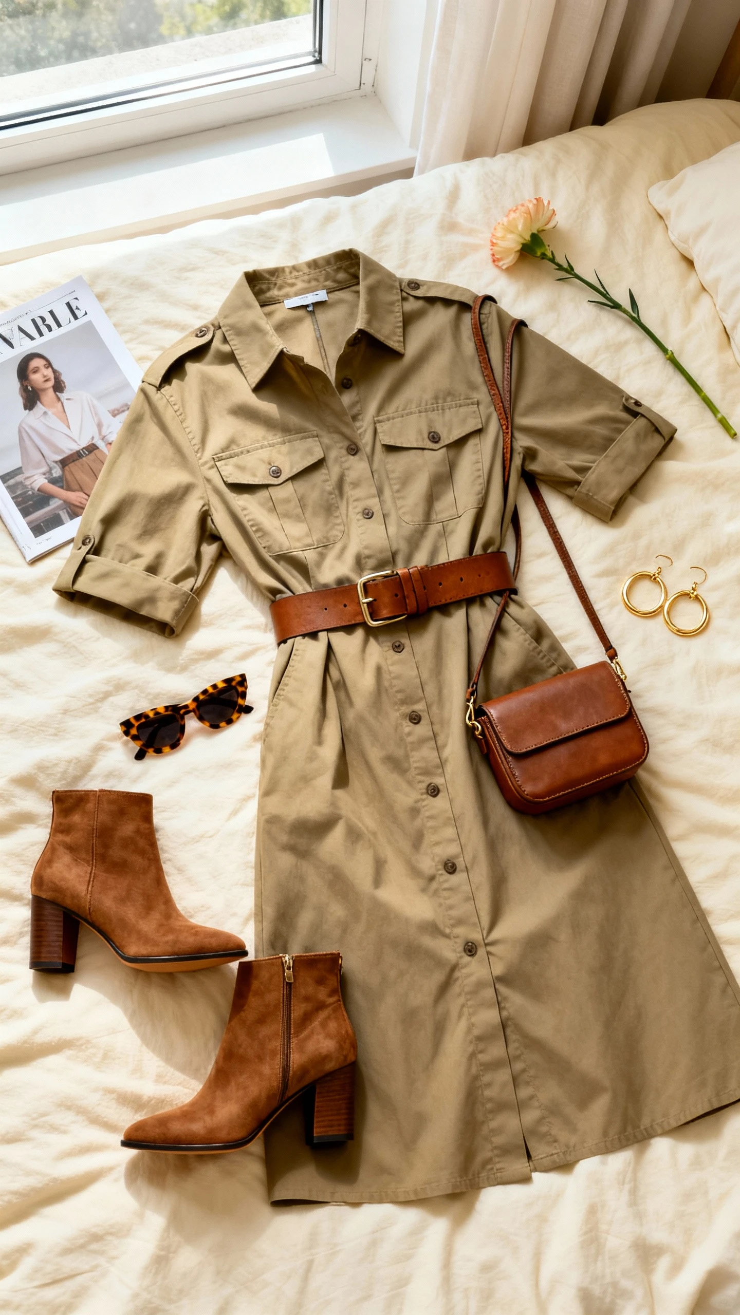 - Belt at the natural waist to sharpen the silhouette; add a shacket when temps drop.