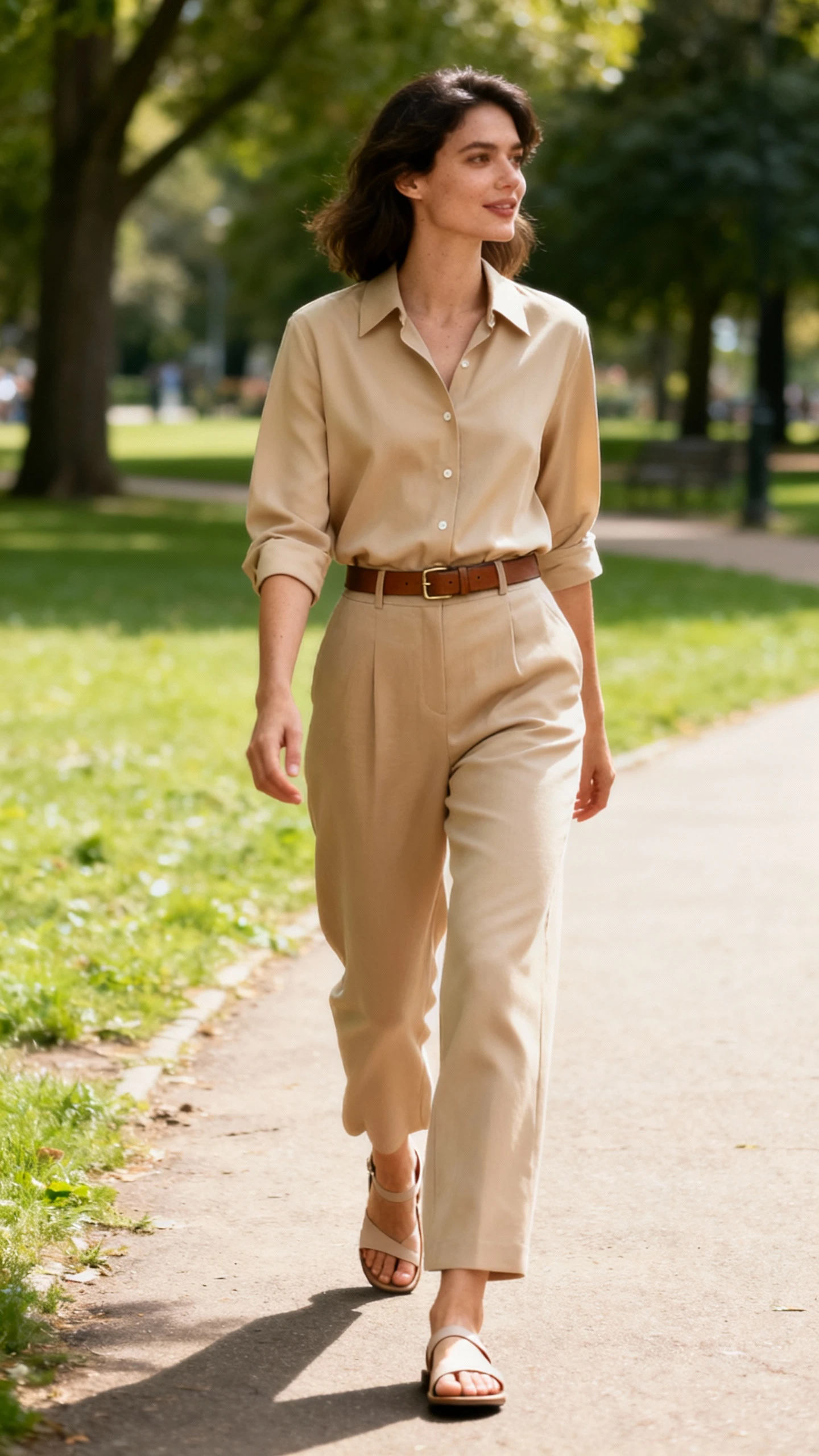 - Define the waist with a belt, but keep it simple—no shiny hardware overload.