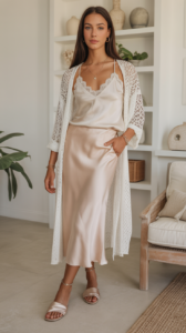 5. Silk Cami & Bias Skirt Set: The “Dinner-To-Dreams” Look
