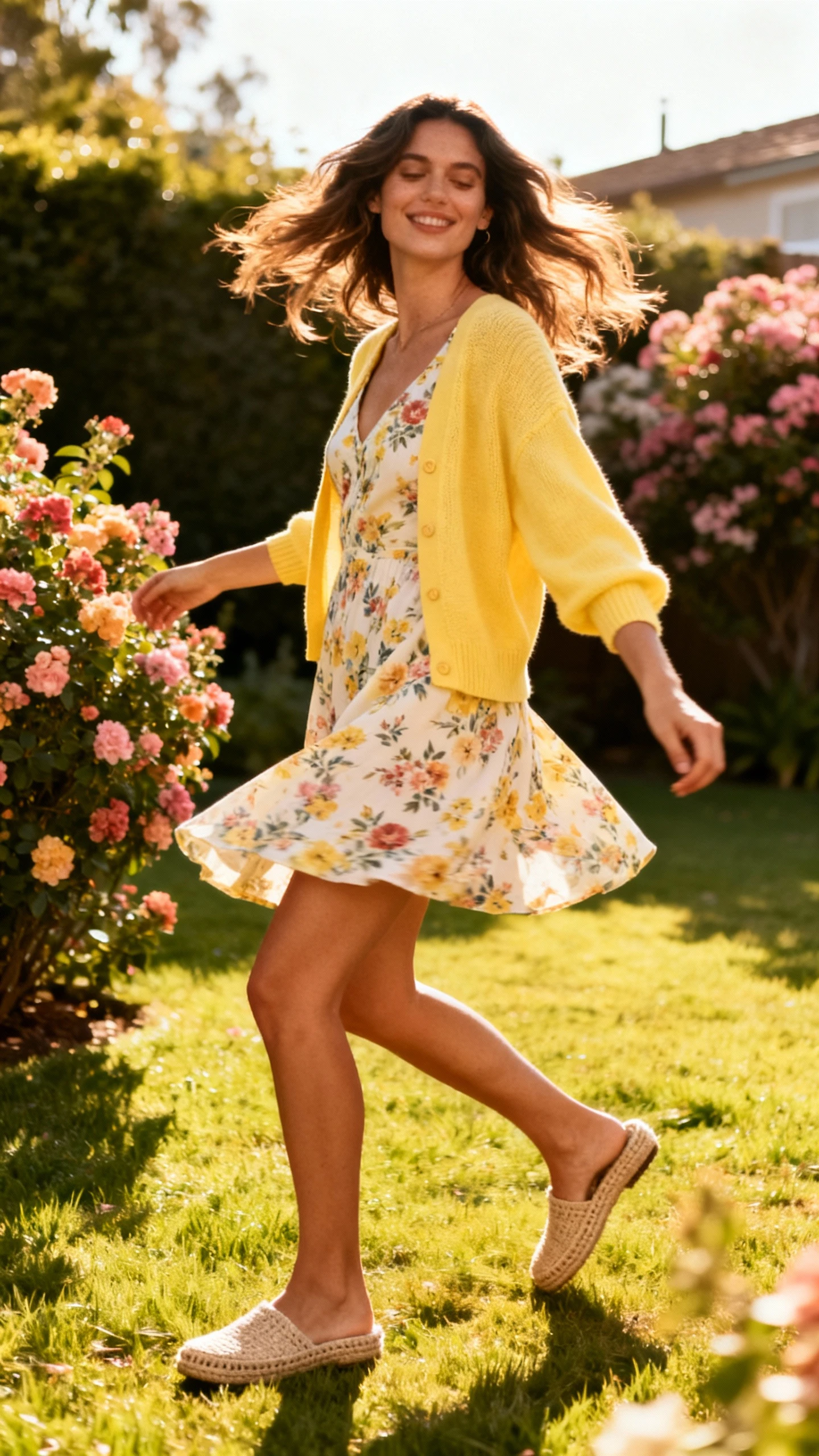 5. Butter Yellow Cardigan + Floral Dress For Garden-Party Energy