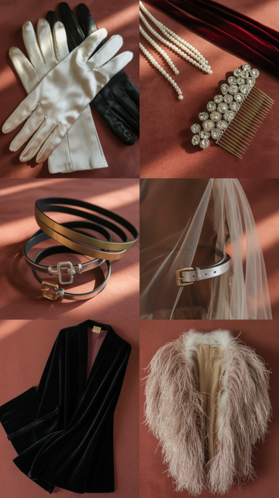 - Gloves: opera-length silk or wrist-length leather, depending on the vibe.