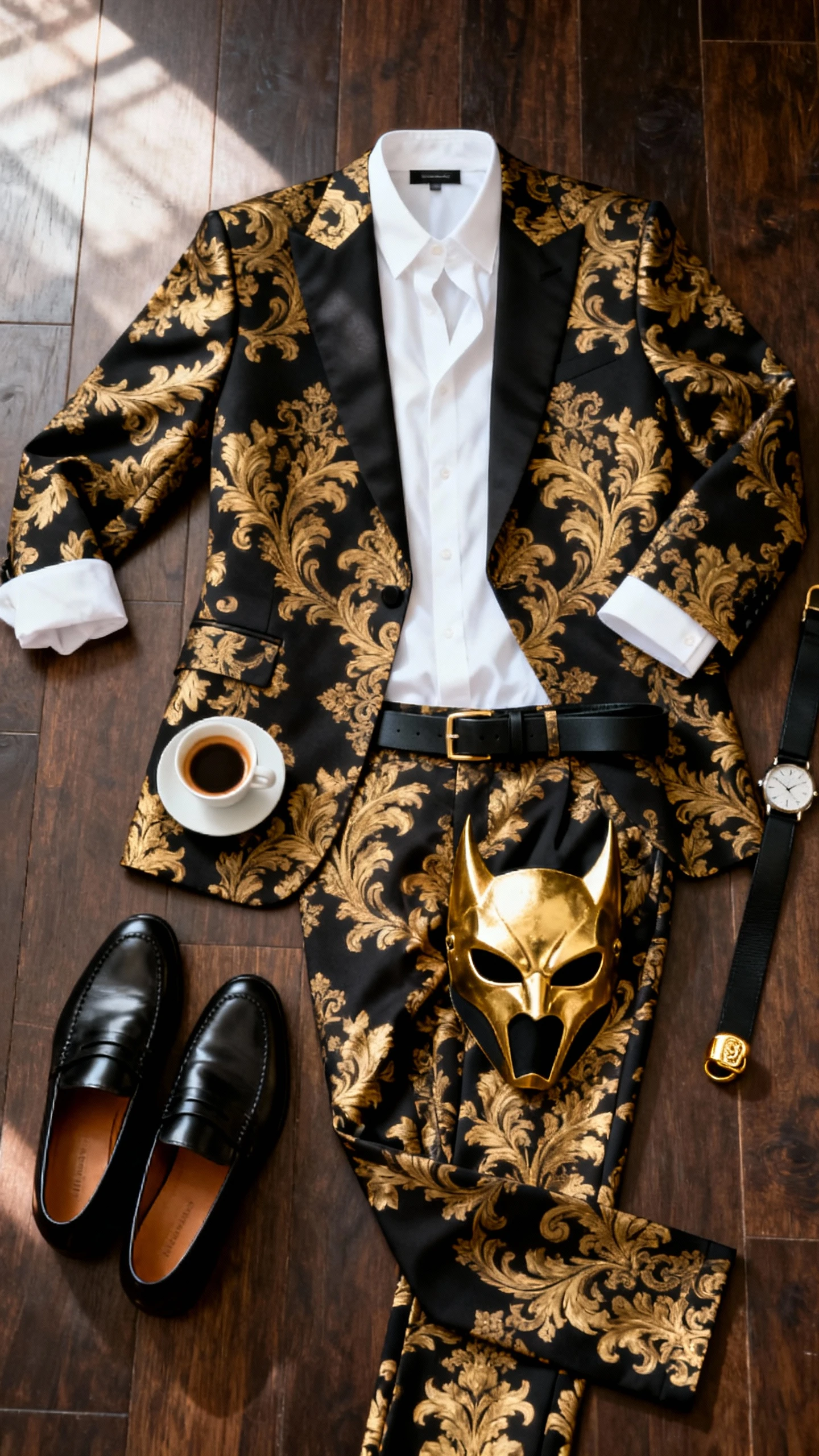 2. Baroque Gold And Black Suit With A Rogue’s Mask
