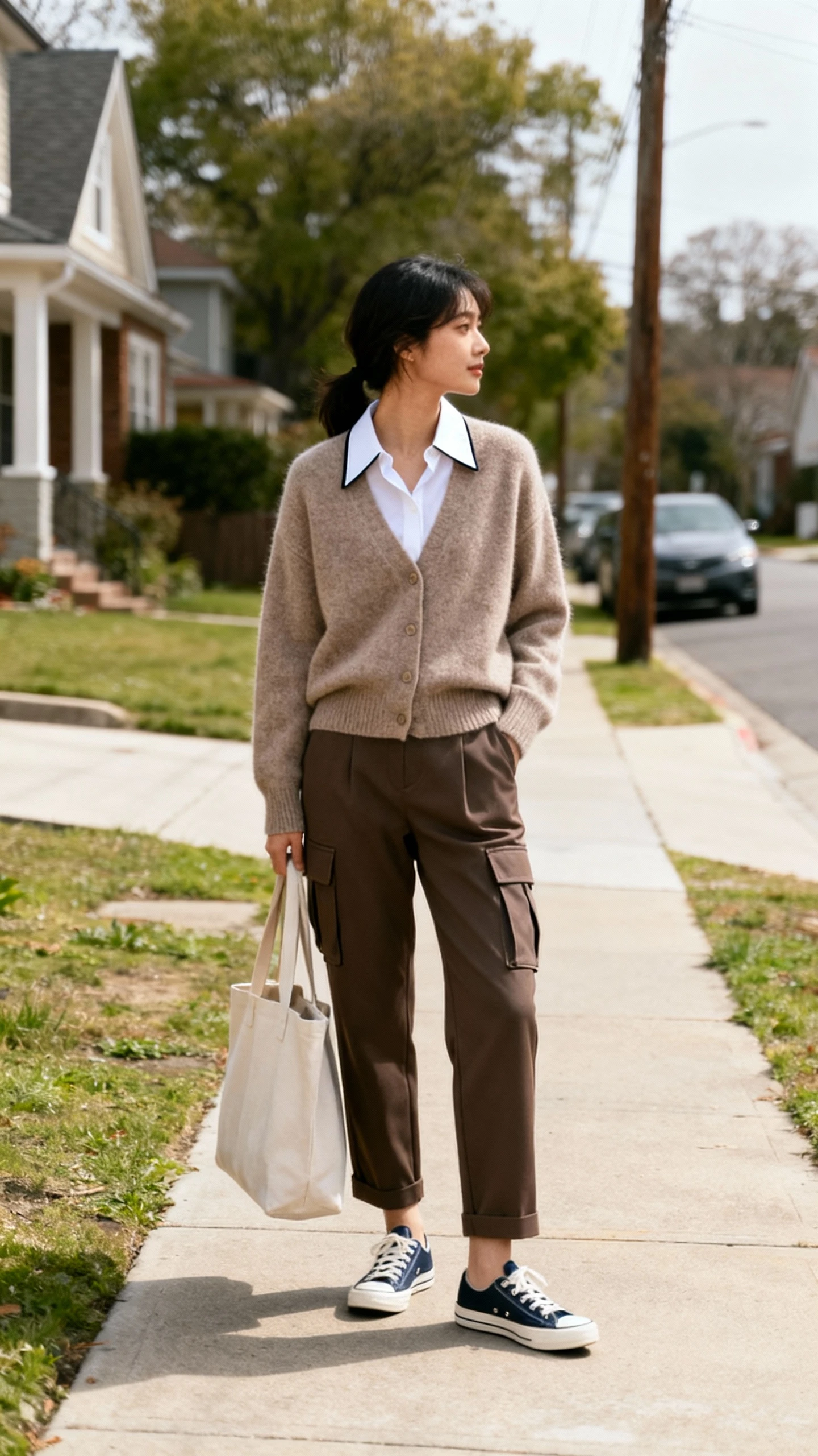Utility, but make it chic. A tailored lapel shirt balances the casual vibe of cargo or parachute pants, especially when you add a refined belt and elevated sneakers or heeled mules. It’s the perfect “out all day” formula.
