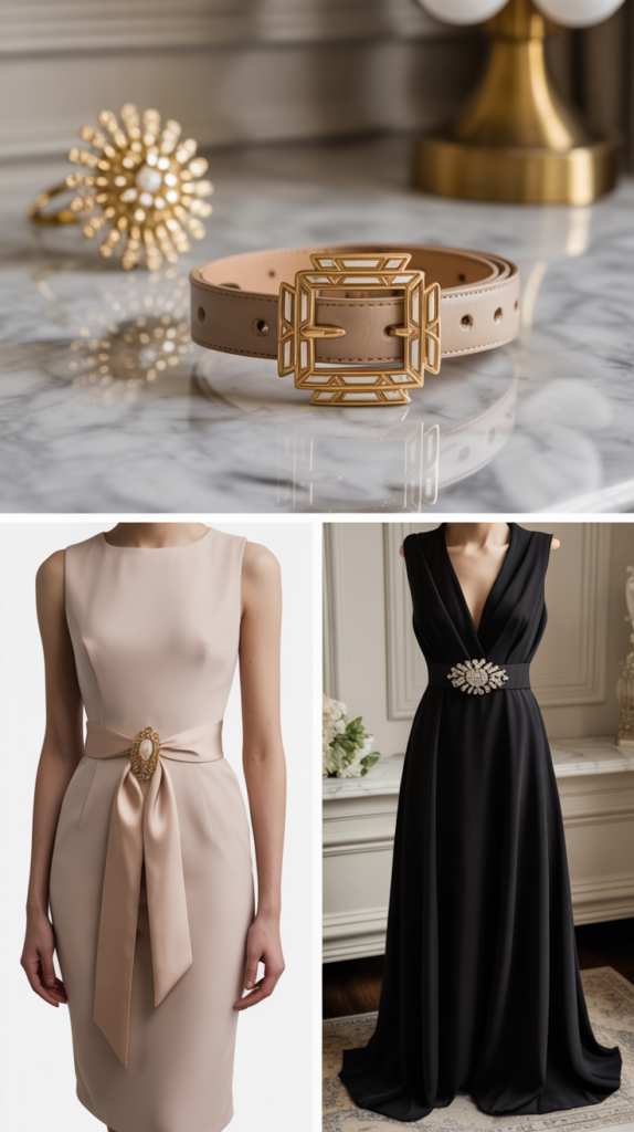 - Structured dresses love it: Cinch a sheath dress with a ribbon or belt, then add a brooch at the knot.