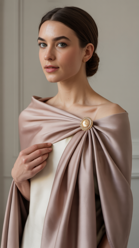 A brooch turns a scarf from “cute” to “Countess.” Drape a silk scarf across one shoulder and pin it near the clavicle, or use a brooch to secure a pashmina at a formal event. You’ll look expensive and stay warm—win-win.
