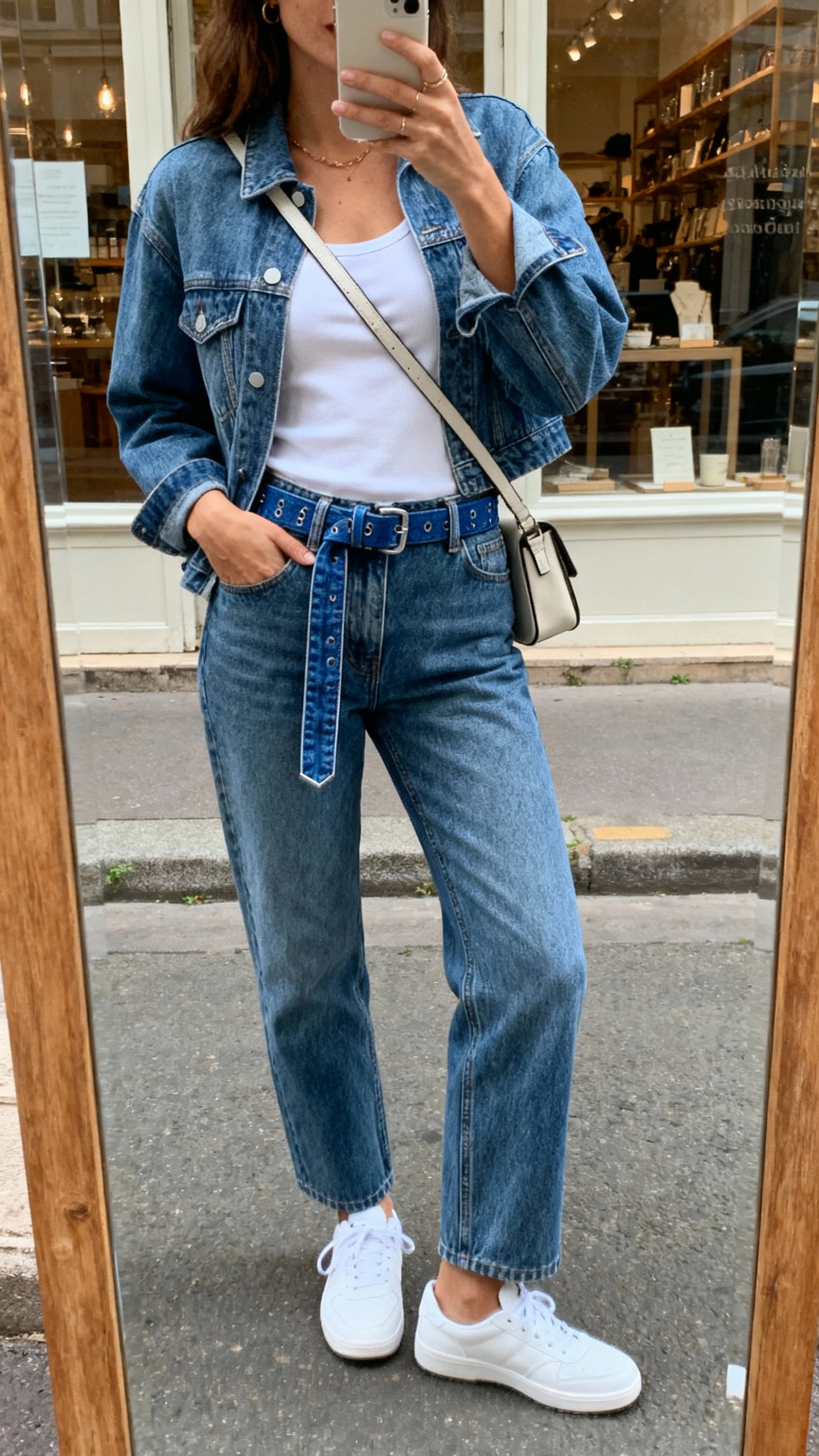 5. Double-Denim Moment With A Belt That Pulls It All Together