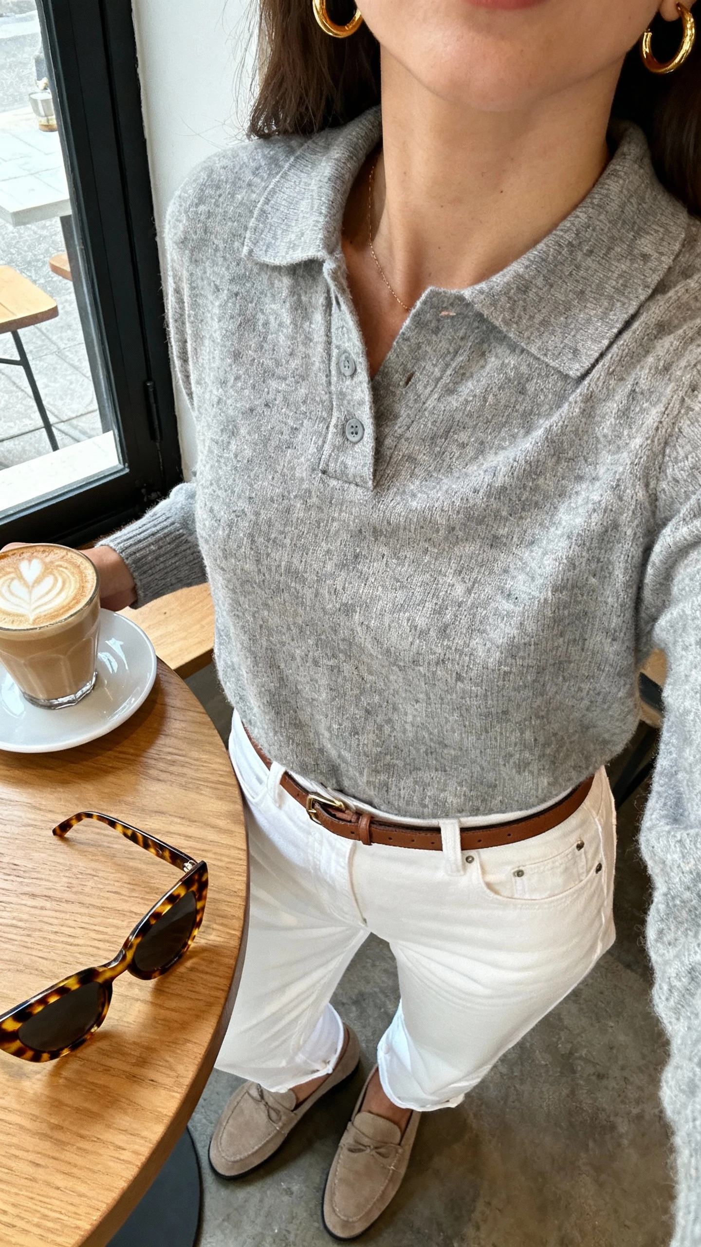 6. The Polo Knit + White Trousers Look That Feels Yacht Club Without The Membership
