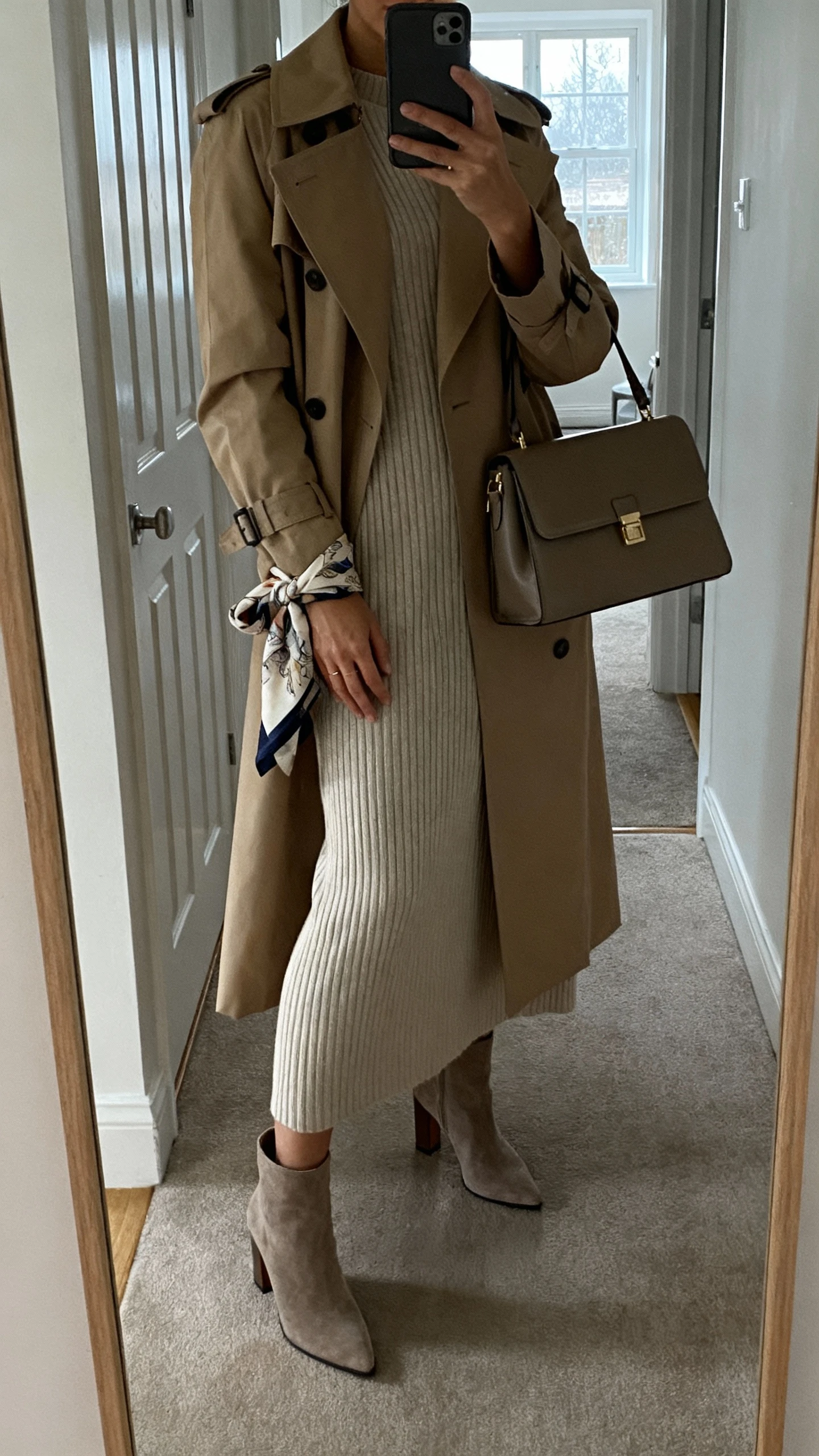 5. The Trench + Knit Dress Duo That Always Looks Like Old Film Romance