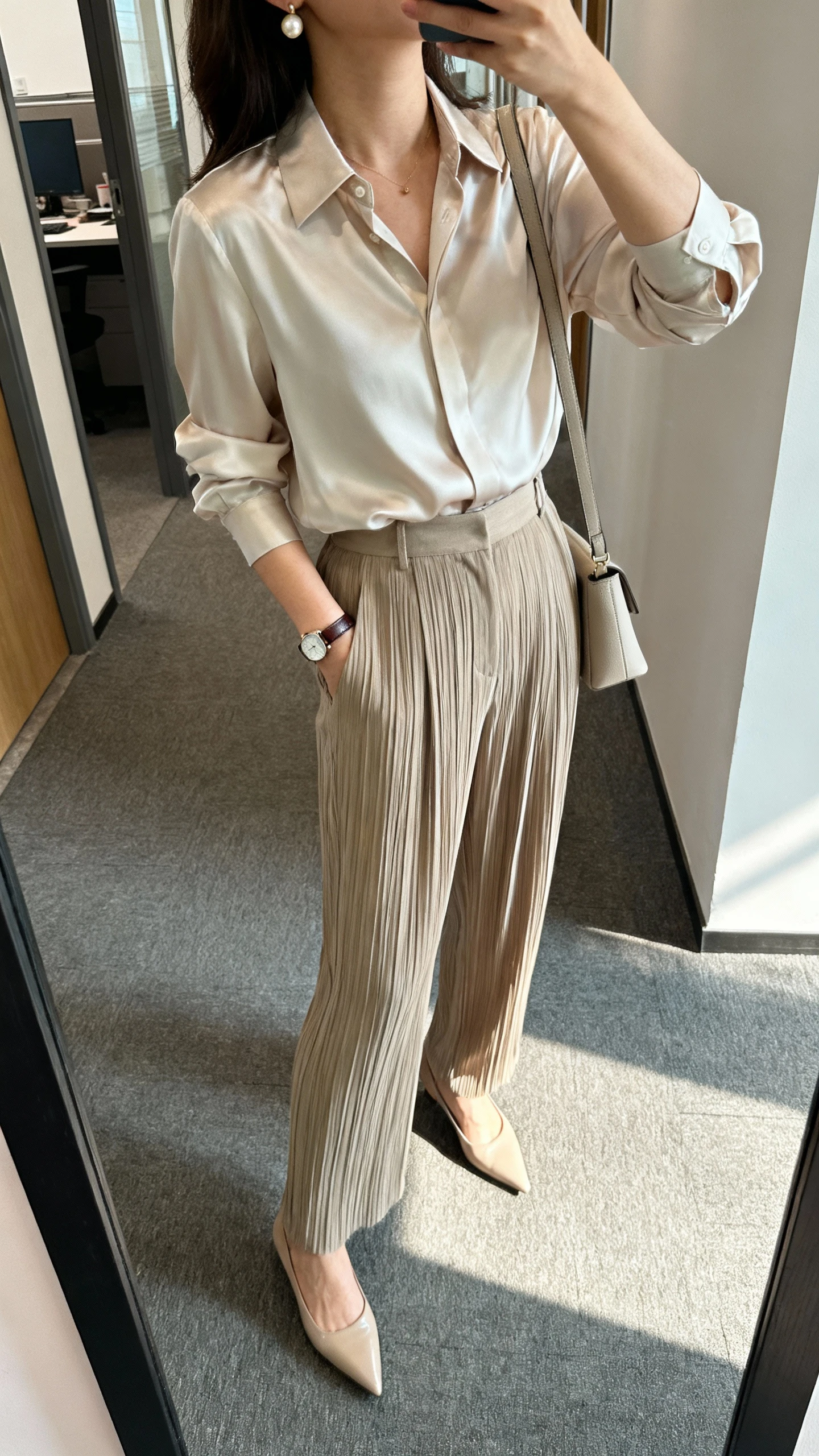 2. The Silk Blouse + Pleated Trousers Set That Whispers Old-World Elegance