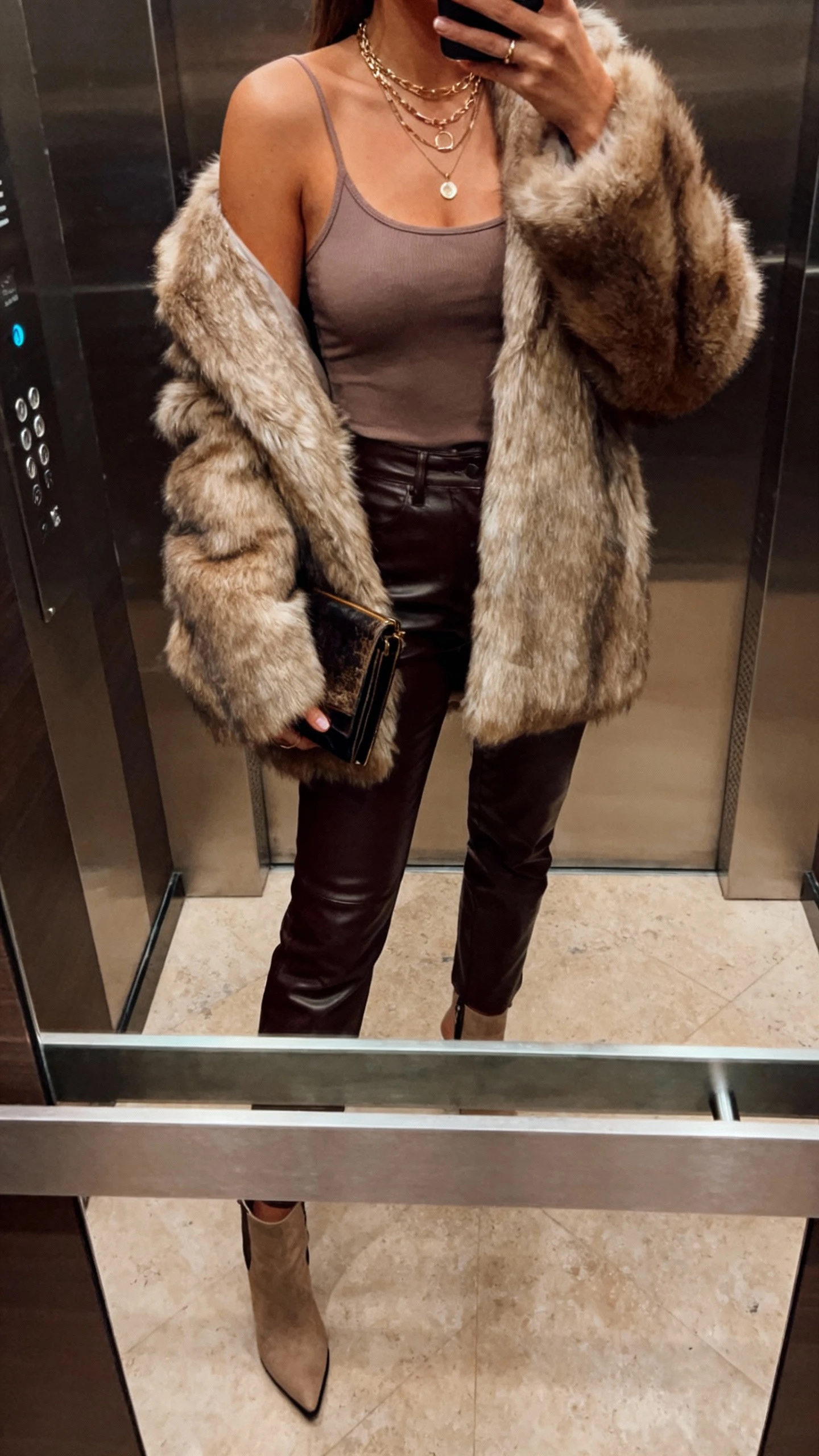 When you want glam with grit, this is it. A plush fur coat thrown over leather pants is a timeless power move—equal parts glam and iconic.