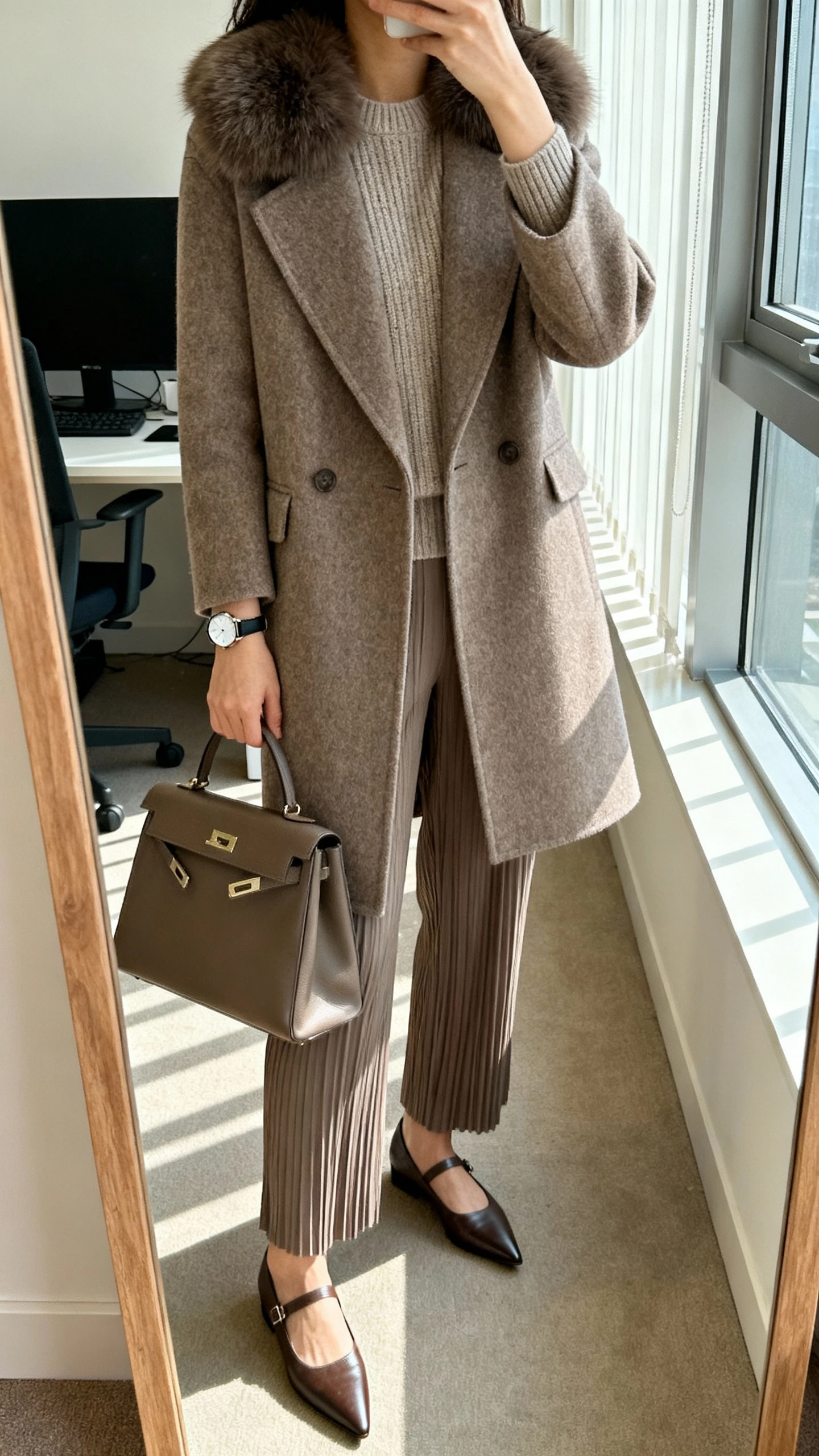 3. CEO Energy: Tailored Fur Collar Coat + Trousers
